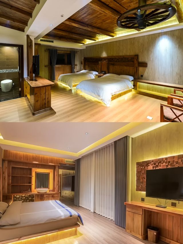 When visiting Changde, you must stay at this family courtyard-style resort hotel! It’s just a 10-minute walk to the Tianhe Grand Waterfall, and some room types offer stunning views of the sea of clouds right from the window 🌥️ 🏡 Highlights: 1. Excellent location! Right in the heart of the scenic area, only a 10-minute walk to Tianhe Grand Waterfall (remember to ask the front desk for a scenic map) 2. The 270-degree mountain view rooms are amazing!!! You can watch the sunrise and sea of clouds lying in bed. Rooms 303 and 305 are highly recommended for their views 3. Pure Chinese courtyard design with three staggered courtyards; the red lanterns lit at night create a very atmospheric vibe 🏮 4. The guesthouse has a separate tea room and book bar; sitting under the corridor drinking tea and enjoying the view on rainy days is super healing 🚗 Nearby Attractions: • Tianhe Grand Waterfall (10-minute walk): Changde’s most spectacular waterfall group, with the fullest water flow after rain • Huaxi Valley (15-minute drive): A vast sea of azaleas in spring, best visited from April to May • Longquan Temple (20-minute drive): A thousand-year-old ancient temple, the vegetarian meals inside are definitely worth trying 🍲 Food Bonus: The guesthouse has its own specialty restaurant! Must-try dishes include Yuanjiang fish head and lei tea, with authentic farmhouse cuisine made from seasonal wild ingredients. There is also a "Shanye Xiaoguan" just a 5-minute walk away, where their steamed cured meat platter is highly recommended.