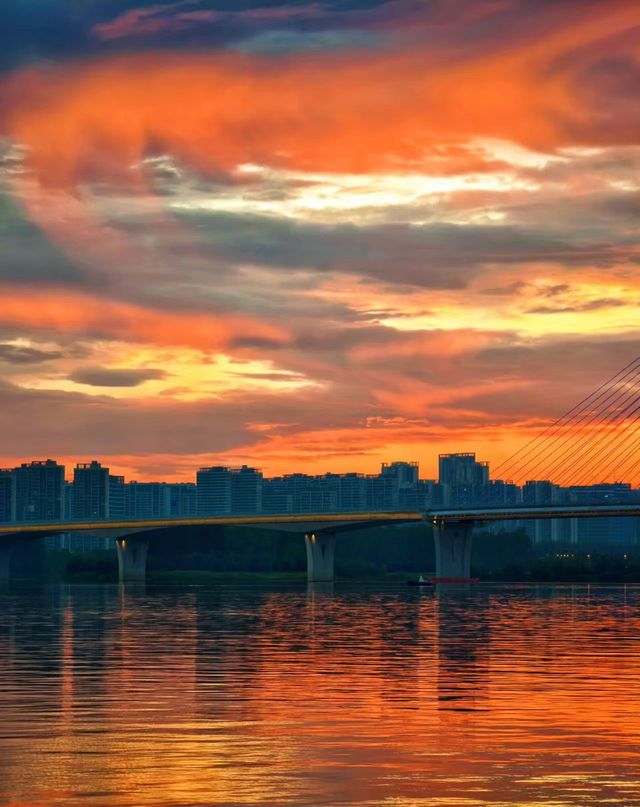 A hidden gem for sunset views in Changsha!! Stay near Moon Island 🌙 and embrace the whole Orange Sea 🌅 Escape the crowds❗️I discovered a magical spot in Changsha for viewing "divine sunsets"— The Moon Island section of Xiangjiang River + staying at "Huiyu Hotel" 🏨 near the island. Fewer people, stunning scenery, and perfect for photos! Just cross a bridge to reach the riverside 🌊 for sunset views, camping, and breezy relaxation all in one place! ✨ Secret location revealed: ✔️ Hotel: Huiyu Hotel, Moon Island, Xiangjiang River, Changsha (Located in Wangcheng District! Don’t go to the wrong place!) ✔️ Right next to Moon Island! Cross a scenic bridge to reach the Xiangjiang riverside! Facing the vast river, with unobstructed sunset views! ✔️ Quiet and healing surroundings, featuring a large lawn, stargazing camping ⛺️, and Instagram-worthy bridge photo spots nearby. 🌅 Exclusive "Orange Sea" romance: Who says you can only see Xiangjiang sunsets at crowded Orange Isle⁉️ Here, take an evening stroll across the bridge 🚶‍♀️ The entire burning sky reflects directly onto the river 🔥 Golden-red ripples stretch from your feet all the way to the end of Moon Island 🌙 The best part? It’s super quiet! No need to fight for photo spots, and you can even sit and daydream in peace~ (Pics 2-4 are breathtaking!) 🏨 My healing "island stay" base: ✔️ Panoramic floor-to-ceiling windows with views of the river and island: Rooms face Xiangjiang River and Moon Island! Greenery during the day, sunset glow in the evening, and gentle lights at night~ (Pic 5 shows the stunning window view!) ✔️ Smart and comfortable: Newly opened in 2023! Brand-new smart facilities and ultra-comfy bedding for instant sleep 💤 ✔️ Forest-inspired design: Wooden and green plant elements make it feel like staying in a cozy forest cabin 🌿 ✔️ Pet-friendly! 🐶 Bring your furry friends along to chase sunsets—it’s pure happiness! ✔️ Thoughtful service: The front desk provides a Moon Island map and sunset timetable ⏰ 📸 Photo tips: 1️⃣ Sunset spots: Riverside line at Silver Star Bay Park (5-minute walk, fewer people!) Riverside trail inside Moon Island (just cross the bridge, with open views!) In front of the room’s floor-to-ceiling windows (perfect for lazy silhouette shots~) 2️⃣ Best time: Summer **7:00-7:45 PM (Wangcheng’s wider river surface means slightly later sunsets) 3️⃣ Iconic photo spots: Silver Star Bay Park’s reed field + sunset (great atmosphere in autumn and winter!) Moon Island’s Instagram-famous white arch bridge (looks like a path to the sky under the sunset!) Hotel bathtub + river view window 🛁 (side view of sunset glow is stunning!) 4️⃣ Outfit ideas: Light-colored long dresses/denim chic outfits paired with straw hats and canvas bags for a full forest vibe! 5️⃣ Props: Handheld sparklers 🎇, camping chairs (available for rent at the hotel), coffee cups ☕️ 🚗 Transportation tips: ✔️ Drive directly to the hotel using navigation, free parking available! ✔️ Metro Line 4, [Guanzi Ling Station], Exit 2, then take a taxi for 8 minutes or bike for 15 minutes. ✔️ Although it’s in Wangcheng District, it’s not far from the city center! A taxi to Wuyi Square takes about 30 minutes. 💡 Why choose this place? A true hidden gem! Say goodbye to crowded tourist spots and enjoy romantic sunsets in peace! 👉 Unique "island living" experience: Explore the island and camp during the day, chase sunsets in the evening, and fall asleep to the sound of waves at night 🌙 👉 Super cost-effective! River-view rooms of the same quality are much cheaper than those in the city center!