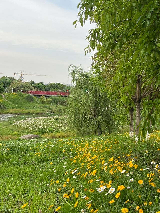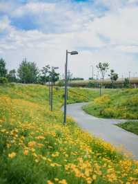 In May, flowers bloom again in Chengdu. Zhonghe Wetland Park welcomes a feast of coreopsis. The hillside is covered with dazzling golden brocade, which contrasts with the clear blue sky. It is so beautiful that it seems like stepping into a romantic chapter of a fantasy animation. If you are traveling with friends, this place is an ideal choice for a relaxing stay. Whether you are immersed in flower photography, enjoying camping and picnics, or playing with children in nature, every moment is filled with relaxation and joy. 【Guide】 Destination: Zhonghe Wetland Park Admission: Free and open to the public Transportation Guide: Take Metro Line 6, Zhonghe Station, Exit D, go straight through the bridge from Entrance 2, turn right and walk about 300 meters to reach this paradise. 【Photography Tips】 From 8 to 10 am in the morning, or from 4 to 6 pm in the evening, under the soft sunlight, you and the sea of ​​flowers captured by the camera will be more warm and dreamy. Coreopsis and geraniums are in full bloom, so don’t forget to apply sunscreen, travel light, and explore more little joys. Stepping onto the Tianfu Greenway, with shared bicycles accompanying you and coreopsis clustered on both sides, it feels like riding on golden waves. Climb to a high place and look far into the distance, overlooking from the top of the hill, and you can take in the panoramic view of the sea of ​​flowers, which is a visual feast. Or you can take photos from the path upwards to capture the coreopsis slope under the blue sky and white clouds, freezing the beautiful cartoon-like moment. Choose a shade under a tree, spread out a picnic blanket, surround yourself with flowers, let your soul rest in this colorful world, and leisurely enjoy an afternoon surrounded by the fragrance of flowers. Zhonghe Wetland Park is waiting for you to come and encounter the beauty unexpectedly.