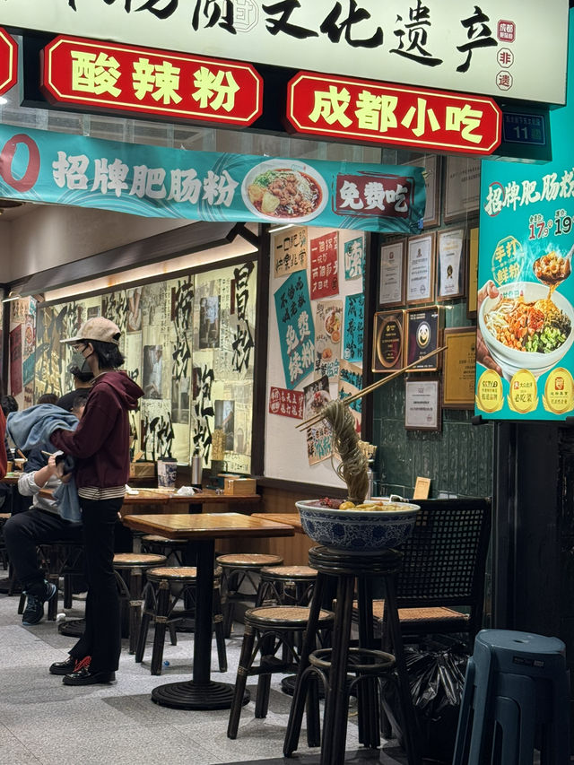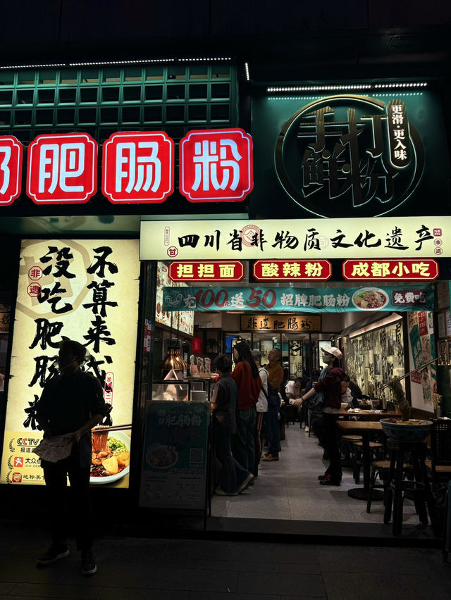 #ChengduTravel “甘记肥肠粉” – Sichuanese Pork Intestines, a timeless delicacy. With over a hundred years of tradition, this traditional recipe from a small waterfront shop in Chengdu has now become one of the most famous pork intestinal porridge shops in the city. - Made fresh daily – soft and chewy, satisfyingly satisfying from the first bite. - The pork intestines (pork intestines) are meticulously simmered, leaving no fishy smell, soft and smooth, and not greasy. Even the 麻辣 or 清汤 soups complement them well. The price is affordable, with a small bowl starting at 15 yuan (approximately 70 baht), and each piece of 节子 is only 3-4 yuan more. We found the bowls to be quite large, enough for two people to eat. #ChengduFood #Chengdu