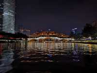 Anshun Lang Bridge Night View, Chengdu, Sichuan | A Thousand Years of Light and Shadow Along the Jinjiang River As dusk falls, the lights on both sides of the Jinjiang River gradually illuminate. At this moment, Anshun Lang Bridge bathes the water in a dazzling display of color. Its simple structure gleams with the light, resembling a golden dragon resting peacefully on the river. The bridge's eaves, the exquisitely carved railings, stand out against the night sky. Red lanterns hang high, their reflections blending with the rippling water, suffusing the entire Jinjiang River with a warm glow. Originally a Ming Dynasty structure, Anshun Lang Bridge has undergone numerous restorations and is now both a landmark of Chengdu and a living piece of history. Walking along, the murmuring of the river echoes in the ears, while before one's eyes, a scene intertwined between modernity and antiquity unfolds. Some rest on the bridge, some take photos; many more simply lean on the railings, observing how this city seamlessly blends the past and the present, prosperity and tranquility.