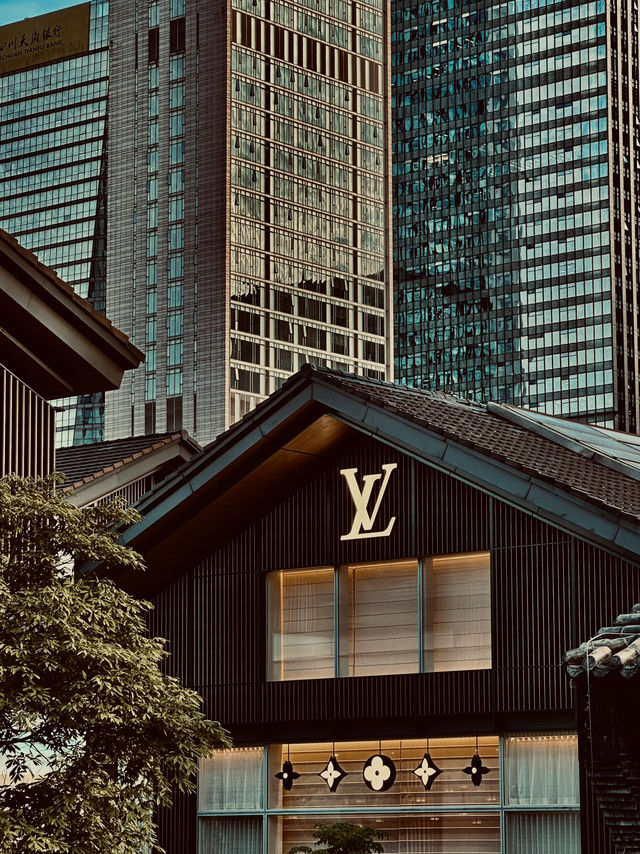 In the heart of Chengdu, Taikoo Li is more than a shopping destination — it is a cultural landmark that captures the city’s unique balance of heritage and modernity. Wandering through its open-air lanes, you are immediately struck by the contrast: sleek skyscrapers rise in the background, while the boutiques and courtyards below are designed with traditional Sichuan-style tiled roofs and wooden façades. This thoughtful blend of old and new makes Taikoo Li not only a retail paradise, but also an architectural experience. The district is home to some of the world’s most prestigious brands, from Louis Vuitton to Gucci and Balenciaga, attracting both fashion enthusiasts and curious travelers. Yet, it is not just the luxury shops that define the mood here. Large-scale public artworks, like the mirrored digital figure and oversized Mickey Mouse sculpture, infuse the space with creativity and playfulness, making it feel like an open museum as much as a shopping hub.🛍️🛒 By day, Taikoo Li bustles with energy — people shopping, meeting friends, or simply strolling through the open courtyards. By evening, as the skies deepen and the city lights glow, the atmosphere becomes even more vibrant, with the illuminated plazas creating a cinematic backdrop for urban life. More than just commerce, Taikoo Li is a lifestyle center — a place where Chengdu’s leisurely rhythm meets international luxury. It’s where locals and visitors alike gather to experience fashion, art, and culture, all woven seamlessly into the city’s modern skyline.✨✨