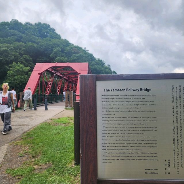 Okay, so picture this: I'm just vibing at Chitose-Yamasen Bridge, totally clueless that it's actually one of the most famous bridges hanging over the Chitose River! 😂 I was so lost in the view, especially with the crystal-clear water underneath—I swear, it's sooo mesmerizing you literally forget everything else. Then, boom! I look up and spot this gigantic red bridge towering over me. Instantly got all the Christmas feels, like I just stumbled onto a massive holiday present in the middle of nature. The structure's bold vibes and that bright color? Seriously, it’s a whole mood 🎄✨. And the water below? It's outrageously clear. Saw people swimming and kayaking like pros (so jelly, BTW), but honestly, it looked wayyy too cold for me to try!🥶 If you love pretty views or crazy clear rivers, this spot is a must-see. Basic info for your trip plug: Yamasen Bridge Address: Shikotsukoonsen, Chitose, Hokkaido 066-0281, Japan Hours: Usually open 24/7—nature never sleeps! So, if you’re after serious holiday vibes and epic river views in Chitose, don’t skip Yamasen Bridge. Totally Insta-perfect and worth chilling at for a while!