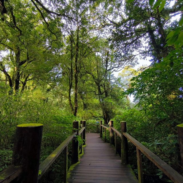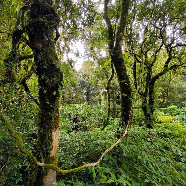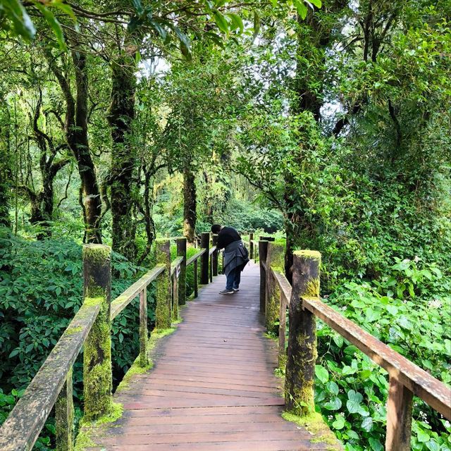Doi Inthanon, the highest peak in Thailand, is a towering mountain that offers a convenient and hassle-free travel experience. The well-maintained roads make it easy and safe to travel, allowing tourists to explore the stunning mountain views at their leisure. Whether it's a day trip or an overnight stay to fully immerse in the enchanting atmosphere, Doi Inthanon has something for everyone. We stayed in Chiang Mai and left early in the morning at 5:30 AM, arriving at 7 AM. The cool and comfortable weather made us wish our hometown had such a climate. There is a nature trail to see the cloud forest, an ancient forest that seems to create its own clouds. In the forest, it's like all external noise is cut off, making it feel like you're in a fairy tale world.