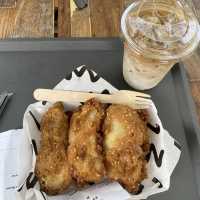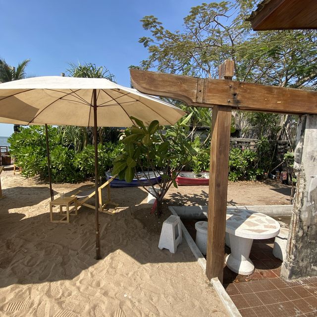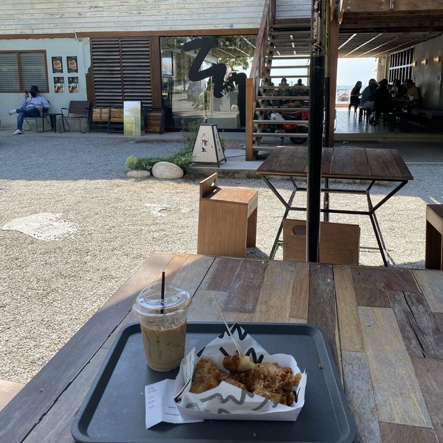 #Where to go this summer For those who are visiting Bangsaen this summer, I recommend a beautiful seaside cafe with a great atmosphere and delicious coffee. The shop's name is Way Coffee House. This shop has a two-story wooden house by the sea with beautiful trees in front. The first floor is an air-conditioned room and a place to order coffee/choose desserts. On the day we went, there was a special menu of fried bananas. We didn't hesitate to order some to try. They were very delicious, crispy on the outside and soft on the inside. There was no rancid smell. It went great with iced latte. This shop also has an outdoor area to sit in. The atmosphere is nice. The sea breeze blows from time to time. It's super chill. On the second floor, they also sell Japanese omakase style food. You can come to one place and get both savory and sweet dishes. #SecretLocation #AtiReview #CafeLife