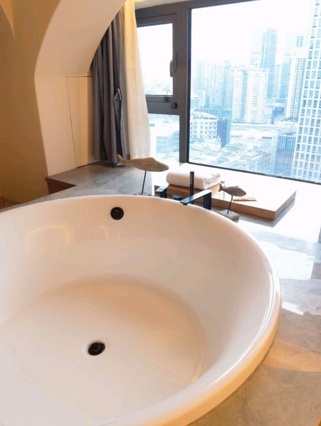 When I went to Chongqing in July, I saw a user recommending this hotel. I chose it because there was a discount! 1️⃣ **Transportation🚇**: Ten minutes walk to the subway station (**Guanyin Bridge Station**), very close to major attractions, take a few stops nearby is the popular **Guanyin Bridge Snack Street**. 2️⃣ **Environment**: The room is huge, has a projector and **Dyson hairdryer**, cleans very clean, the toilet has no smell at all 3️⃣ **Service**: Butler service, with valet laundry, very courteous offering a different style of afternoon tea every afternoon. **Note**: Very close to Guanyin Bridge Delicious Street ~ There are also many resident hot pot restaurants nearby, a few minutes walk away, it's super great! #New Year Good Places 2025 #Hotels #Chongqing Good Places #Relaxation #trip