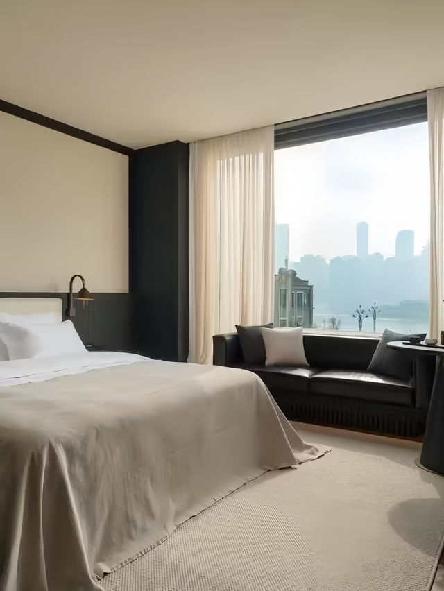 Family! I’ve found a treasure in Chongqing! Just stayed at this newly opened riverside view hotel and didn’t want to leave! Got flooded with questions on social media, everyone thought I was staying at some high-end resort😭 The hotel is right on Nanbin Road (Chongqing’s version of the “Bund”!), directly facing Chongqing Grand Theatre and Jiefangbei CBD. Open the window and you see the magnificent confluence of the two rivers! With 270° floor-to-ceiling windows and a viewing terrace, you can see the sparkling river by day and the city lights of Yuzhong Peninsula at night—the whole night view is right before your eyes—who gets it! Soaking in the bathtub watching Hongyadong and Qiansimen light up, this is the true way to experience Chongqing! The public area design totally matches my aesthetic! The white-tone style looks super high-end, with lively floral installations overhead and very textured relief paintings—every snap looks like a magazine shoot📸 The outdoor pool on the second floor is surrounded by Southeast Asian greenery, swimming while watching the city night view in summer is just so chill~ The room experience is top-notch! All amenities are on par with five-star standards, and the basket-style breakfast is delivered straight to the room. Eating Chongqing noodles facing the river, happiness explodes🍜 There are only 12 rooms in total, each with a different view. Whether it’s the river view or the courtyard, you can feel that kind of “hidden away from the world” tranquility, completely isolated from the hustle and bustle of the city~ Transportation is super convenient! 1-minute walk to Changjiahui, 5 minutes to Danzishi Old Street, and a 15-minute drive to Jiefangbei and Hongyadong. No detours needed for food and sightseeing! If you want to relax and enjoy the view in Chongqing, just head straight here! Stay once and you’ll understand what “falling asleep with the mountain city night view” romance means~ 🏨 Chongqing Wuyushanxing Resort Hotel