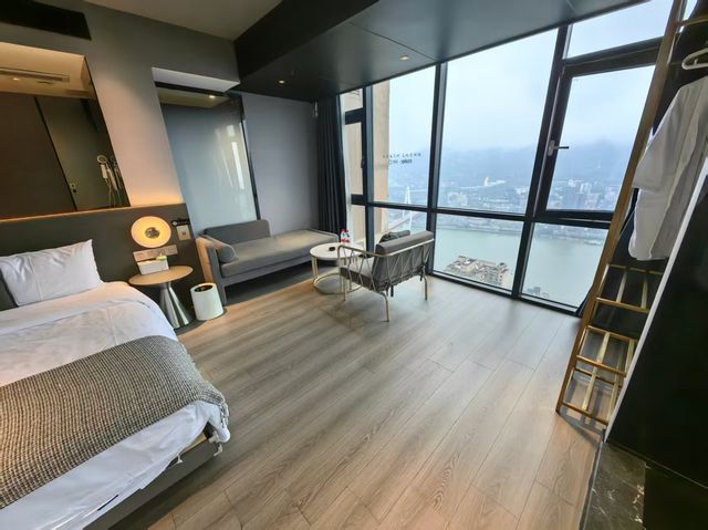 How can you spend a leisurely afternoon that's truly worth it? 🧐 I choose to lie flat and watch the river! This weekend, I finally gave myself a spontaneous vacation and chose the long-awaited high-altitude river view hotel. This time, I stayed at Lindu | High-altitude River View · LD Cloud Designer Hotel, located near Jiefangbei Pedestrian Street and Hongyadong, with incredibly convenient transportation. The subway goes directly to the hotel entrance, so there’s no need to worry about luggage 🧳 As soon as I entered the room, I was captivated by the huge floor-to-ceiling window! The entire wall is glass, and lying in bed, you can see the Yangtze River and the city panorama. During the day, clouds roll by, and at night, the city lights come on—it’s truly beautiful!!! This is the real lie-flat lifestyle~ No need to squeeze into the crowded Hongyadong for photos, you can enjoy the most beautiful river view 🌊 The hotel’s design is also very strong, simple and modern but warm. The front desk even gave me welcome coffee and snacks; the service was really thoughtful~ The staff also recommended how to plan my itinerary. The hotel is very close to Hongyadong, Jiefangbei, the Yangtze River Cableway, and Shibati, all within walking distance. The most comfortable thing is that here you can vacation without any plans. When you’re tired, take a nap; when you wake up, stare at the Yangtze River; when you’re hungry, go downstairs to find food (there are so many delicious options nearby); when you feel like moving, take a stroll to Hongyadong for a check-in. For lazy people like me, vacation should be at this pace—no rushing, no check-ins, just living freely, and at the same time enjoying an unbeatable river view. A little question: Do you think vacations should be packed with activities and check-ins, or like me, lying flat watching the river and resting? 🤔 Lying flat is the true essence of vacation, don’t you agree?