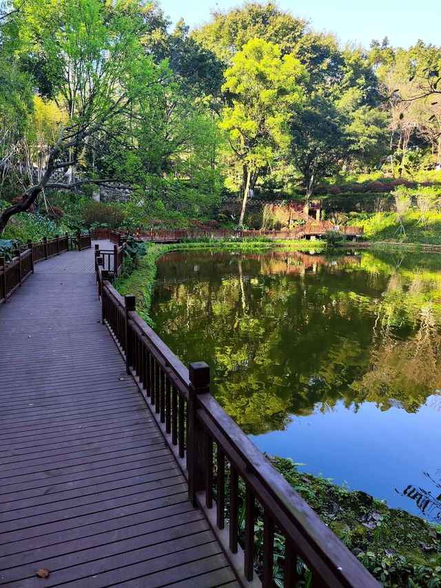 Old reservoir surrounded by ancient streets, a tranquil beauty full of historical charm. The park features mountains, water, trees, and flowers. The over 10,000 square meter scenic lake is home to five black swans. Walking along the lakeside boardwalk reveals a leisurely atmosphere. ⛰️Attraction Name: Shimen Park 📍Location: No. 200, Shangjiucun, Hongshi Road, Jiangbei District, Chongqing. 📝Opening Hours: Summer 05:30-22:00, Winter 06:00-22:00. 💰Admission Fee: Free. 🚗Transportation: Take Metro Line 5 to "Dashiba" Station, exit 1B, then walk about 890 meters. For driving, navigate to "Shimen Park" within the city; limited parking spaces are available nearby. ———————————————— Shimen Park