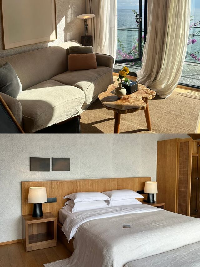 The holiday is coming soon, I would like to recommend a hotel I like very much~ - Recommended reason top1. The hotel has a very good view. The seaside restaurant and the internet-famous arch are very beautiful. You can read quietly on the terrace of the room. Looking up, there are flowers and trees. Seagulls fly over the sea from time to time. It is really beautiful🥹 top2. 🛏️ The room is very stylishly designed, with complete audio equipment and a full set of toiletries from Diptyque, which is a plus~ - Sweet and sour fruit tea and afternoon tea desserts are provided upon check-in, and goodnight drinks and sleep-inducing aromatherapy candles are delivered before bedtime; breakfast is semi-buffet, and the staple foods ordered are rice noodles, porcini noodles and thin bean powder, which are all very distinctive and delicious; there are also plenty of drinks, fruits and snacks in the room. top3. The hotel's restaurant is super beautiful, and taking photos and checking in are very photogenic. Because it is so popular, you must make an appointment in advance, and be sure to choose dinner during sunset 🌄 (7-9 o'clock). This time is the best ~ Muxi Dali Restaurant top4. The service is even better The housekeeper will contact you in advance before you check in, help you carry your luggage to the room, and add you on WeChat to send you tips on eating, drinking and having fun. During the stay, the housekeeper will try his best to help solve any problems. It's super considerate.