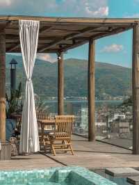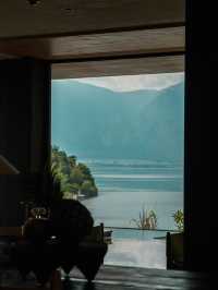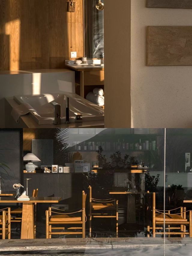 Stepping from the mundane world into "mountains and sea," after a narrow path, you arrive at Yunshu Resort Hotel. The lobby intertwines black and natural wood, silent and serene. Daylight falls from the skylight, drifting between walls and floor like a painting. Halfway up the mountain, voices fade away, only the sounds of birds and wind through leaves remain. The heart naturally quiets. There are fourteen guest rooms named: Introspection, Not Too Late, Simplicity, Letting Go of Clumsiness... like an encounter with oneself. Opening the door, every window is carefully framed as a scenic view. Though there are no plum blossoms, there are similar moments of spiritual connection—"The moon outside the ordinary window is the same, but with plum blossoms, it becomes different." Here, time seems weightless. Inside, you quietly watch the greenery flow in, or climb to the top to gaze at Shuanglang Ancient Town and Erhai Lake. Though not by the sea, you gain a higher and broader perspective. By watching mountains, observing clouds, and listening to the wind, you soothe your body and mind. 🌊 No need to chase the noisy shore, When the heart is calm, the mountains and sea will come to you.