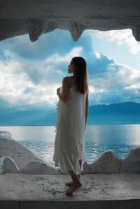 The most stunning moment of the Dali trip is none other than standing on the balcony of Dali Pomegranate Sea View Boutique Hotel (Shuanglang Erhai Branch), watching the sunlight pierce through the clouds and shine on Erhai Lake✨ The light and shadow here dance, and every snap looks like a masterpiece📷 🏡 Boutique highlights: • Moon bathtub check-in spot (Cloud Shadow Suite): The dreamy bathtub that looks like "standing on the moon's surface" is definitely a hit, paired with a white bathrobe + green plants, full of Instagram vibes • 180-degree sea view balcony: Every morning you open your eyes to the gradient blue of Cangshan Mountain and Erhai Lake, and at dusk, the clouds dye the entire room orange • Smart home perks: electric curtains, smart toilet 📍 Prime location: Right in the center of Shuanglang Ancient Town, a 3-minute walk to the passenger transport center, super convenient to popular restaurants Fushi and Muxi Dali; Sitting on the balcony at night, enjoying the breeze is incredibly pleasant✨ 📸 Must-shoot spots: 1. Bathtub + moon background wall (recommended to wear a solid color slip dress) 2. Balcony lounge chair + Erhai sunset (around 5 PM for the softest light) 3. The "Santorini" white wall in the public area 🍰 Hidden perks: The rose cheesecake for afternoon tea is amazing, and the coffee beans are endorsed by teacher Yang Liping‼️ 💡 Tips: • When booking, request a middle room for a wider view • The boutique provides free dresses👗 and travel photography services • Off-season prices are very attractive, but the winter seagull season is even more photogenic