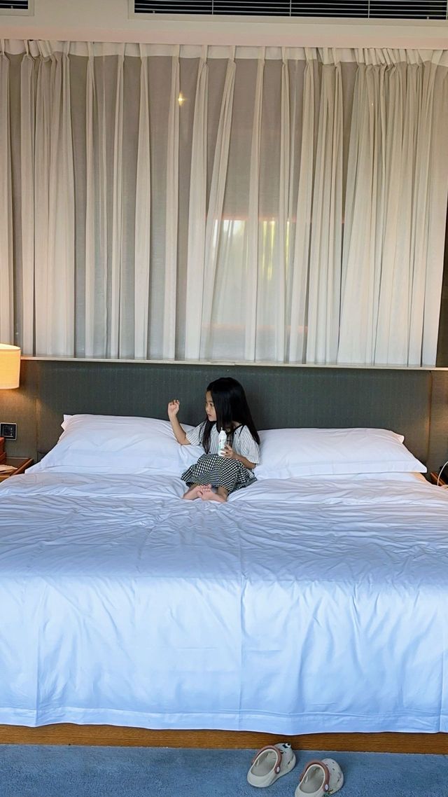 In a village in Dayi County, the guesthouse is surrounded by rice fields with an excellent ecological environment, filled with greenery everywhere. It's perfect for city folks to bring their kids to relax and refresh their eyes👁️ ✅ The guesthouse features a fully transparent swimming pool, perfect for taking stunning photos anywhere. You can capture panoramic views from the rooftop beside the pool or take beautiful shots of kids in the water through the transparent glass at the pool’s end. If you're lucky, you might even catch a beautiful sunset🌇 ✅ We booked a first-floor room that comes with a private hot spring and a small courtyard. When the outdoor pool is sunny in the morning🌞, kids can also play in the private hot spring without worrying about sun exposure ✅ The breakfast at the guesthouse is very rich, including small cakes🧁, various breads, noodles, milk, eggs, fruit juices, and many other options 💕 Tips: Bring swimsuits🩱. For kids who can’t swim, you can bring a swim ring with a seat in the middle because the outdoor pool is quite deep. This time, I brought a round swim ring⭕️ for my kid, who is quite slim, and I was worried she might slip through the middle🤷 Nearby: ✔️ Anren Ancient Town, which has lots of food options. I recommend the Liuxiang Duck; I always pack some to take home every time I visit 📍 Xidi Alanruo Resort Village, Dayi County