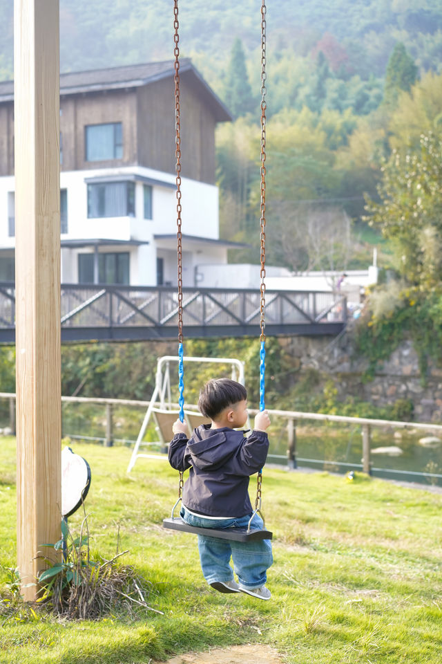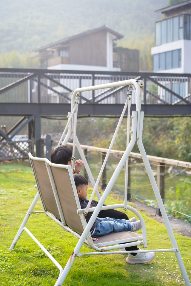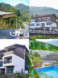 During my break, I drove to Mogan Mountain again. I come to Mogan Mountain every summer to escape the heat, but this time I brought my kids to experience Mogan Mountain in the fall. 🍂 - This time, I stayed at the Tingjian Mogan Mountain Light Luxury Design Homestay. - The environment is beautiful, surrounded by mountains ⛰️, and there is a stream in front of the door. The public area has large floor-to-ceiling windows, where you can sit and enjoy the scenery and listen to the sound of the stream. It's really comfortable. The homestay's dog 🐶 "Lele" is really friendly and super cute. There are also swings and a sandpit outside, and the kids had a great time playing. - Get close to nature and experience the beauty of the world. ❤️