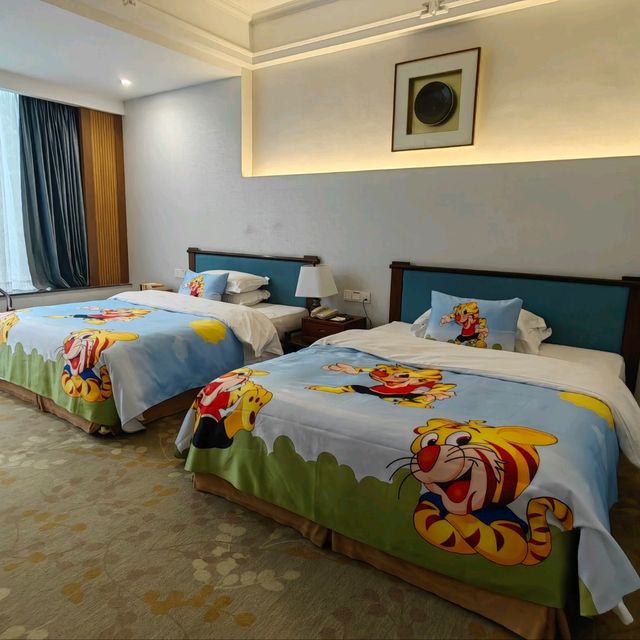 Dongguan Yinxian Villa Hotel Dongguan Yinxian Villa in Changping In addition to the park, the hotel also offers family rooms. The family rooms are very spacious. We booked a family deluxe twin room. The price was reasonable and very cost-effective. The room and bathroom were spacious. The bathroom even had a bathtub, which the children loved. Besides the bathtub, there was also a spacious step-up tub. Children's toiletries were also provided. There was also a clothes dryer, which is rare in hotels. The family room features a tent and a small wooden horse for children to play with. The view from the hotel room overlooks the park. Yinxian Villa Hotel is a four-star hotel. The service level is excellent. The hotel is right next to the park. It was easy to take the kids out for a two-day, one-night trip. The breakfast buffet the next day was also extensive and good, with many of my favorite cold dishes. The restaurant was very comfortable. I would definitely return!