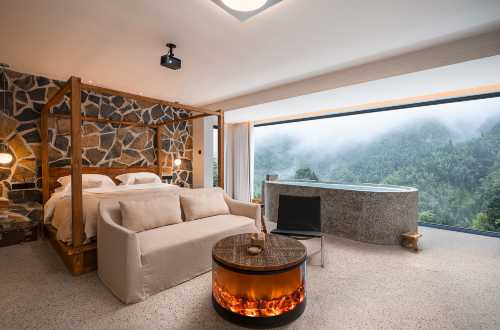 When the first autumn leaf of Mount Qingcheng turns caramel-colored, and the mountain breeze carries a chill of poetic elegance, the private hot spring at Yunfuli Yunshu Qingcheng Houshe becomes the gentlest indulgence of autumn and winter. A private soak, immersing the autumn and winter of Mount Qingcheng into time In front of the panoramic floor-to-ceiling window, a stone private hot spring steams warmly. Watch the autumn rain wet the glass, blurring the layers of forest outside into a hazy painting; wait for the winter snow to fall softly, letting the pure white of the mountains and the warmth of the pool collide in a full embrace. The flowing water of the pool is a resonance of nature and luxury. In this space, you only need to let down your guard, allowing the warm spring water to envelop your body and soul, soaking all the magnificent autumn and winter scenery of Mount Qingcheng into this healing moment. A lodging collection, hiding the philosophy of rustic and elegant living The guest rooms are a symbiosis of nature and aesthetics. The texture of the original wood furniture holds stories of time, and the Zen-inspired dried branch floral art reveals the mountain wilderness’s ethereal spirit. A giant screen projector weaves an audiovisual dream for you, and the child-friendly rooms create a playful little world, making family trips full of warmth. Every detail interprets the living philosophy of “residing in the mountains, indulging in daily luxury,” so beyond the private hot spring, you also find the relaxation of being at home. A season of simple joy, slowly enjoying leisure at Qingcheng Houshe in autumn and winter After soaking, sit quietly in the elegant public area, where old wooden tables and vintage lamps brew a lazy atmosphere under warm light. You can hold a book and let your thoughts wander between words and mountain views; or simply listen to the wind, letting the autumn and winter whispers of Mount Qingcheng heal the fatigue of the city. Every moment here is perfectly slow, allowing you to understand the simple joys of life beyond the healing of the private hot spring. This autumn and winter, come to Yunfuli Yunshu Qingcheng Houshe, and with the ritual of a private soak, embark on a healing appointment with Mount Qingcheng. Let the warmth of the private hot spring, the elegance of the homestay, and the tranquility of the forest weave into your most unforgettable travel memory of autumn and winter.