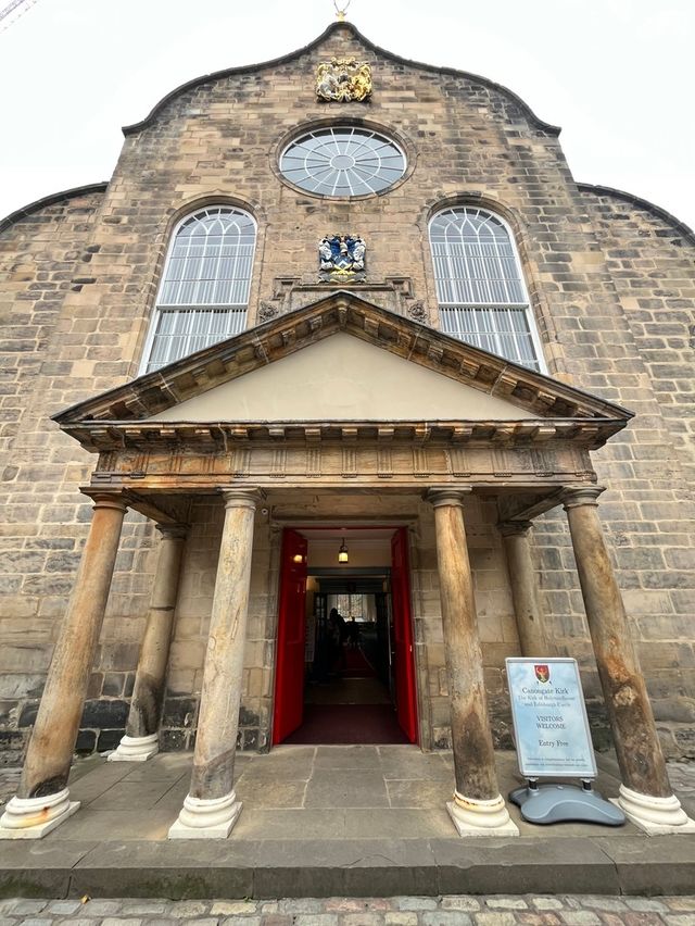 #hellohalloween #europe #europetrip 🏛️ The first thing you notice about Canongate Kirk isn’t its grandeur—it’s its restraint. Set back modestly from the Royal Mile, the building feels like it’s listening rather than speaking. Its Dutch-style gable, rare in Scottish ecclesiastical architecture, gives it a softened silhouette—almost like a folded page in a book of civic memory. 🧱 Exterior – Simplicity with Gravitas The façade is symmetrical and unpretentious, marked by a Doric portico that feels more civic than sacred. It doesn’t impose; it invites. Above the entrance, a small bell tower rises like a punctuation mark—neither boastful nor shy. The stonework, weathered and warm, carries the patina of centuries, yet the lines remain crisp, almost modern in their clarity.