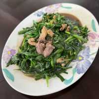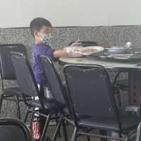 There wasn't much to order for two people, but I knew I had to order the fried chicken. It was indeed thin-skinned, juicy, and not too dry. The fried noodles and fried rice were also delicious; I heard they're fried in lard. I also had the signature leek and chicken intestines, which were delicious, affordable, and generous. Luckily, my four-year-old took a photo with me. He's a real keeper and loves our dog, so I grabbed him for a photo as a keepsake. I hope to order a few more dishes someday. #Taoyuan #TaoyuanFood #FriedChickenRecommendations #FoodTravel