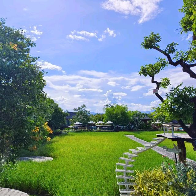 Located just south of Chiang Mai Airport, it takes about 25 minutes by motorcycle or 30 minutes by taxi from Tha Phae Gate. Initially, it was hard to find the entrance, but once inside, the place felt quite spacious. On the right is the accommodation area, which is separated from the café, and non-guests cannot enter. On the left is the café area, which is quite large overall with beautiful scenery. It's a genuine countryside style. During the rice planting season, the fields are lush green, which is very soothing to look at. There are both outdoor and indoor areas. I chose the outdoor area, and it wasn't hot under the trees while enjoying my coffee. There are also fans outside, making it quite cool. The coffee is decent, and there are also meals available. It's a great spot for taking photos and checking in. Store Name: Jungle De Cafe in Baan Tawai (จังเกิ้ล เดอ คาเฟ่ สาขาบ้านถวาย) 📍Address: 202 Moo 6 Khun Khong, Hang Dong District, Chiang Mai 50230