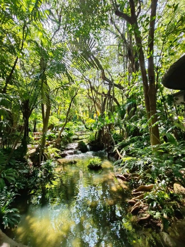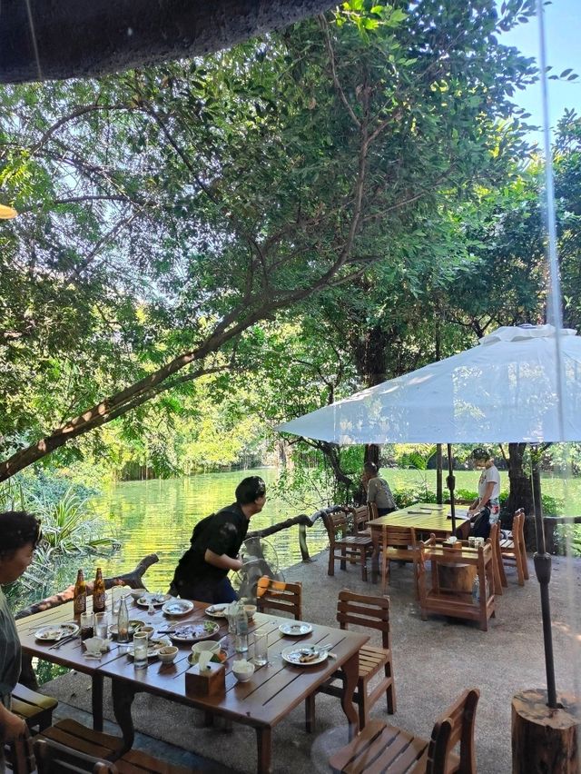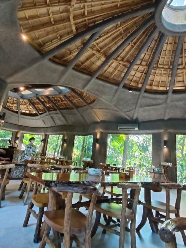 The restaurant is delicious. The atmosphere is like eating in the forest. Very shady.
