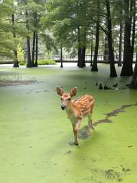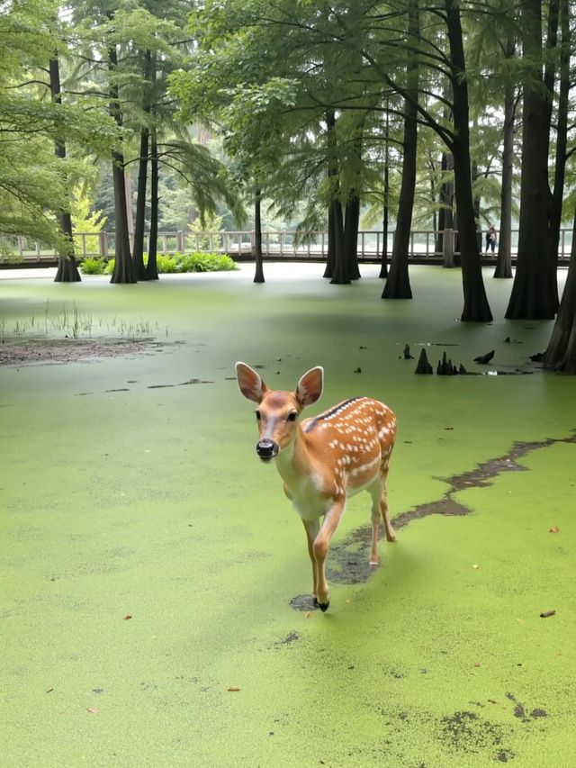 Girls! We finally found a real-life fairy tale forest! Just around Hangzhou, less than an hour’s drive to get there! Navigate straight to Qingshan Lake Matcha Forest, and you’ll truly be healed by this sea of green! 🌿 Sunlight filters through the dawn redwood forest, creating stunning light and shadow effects, as if you’ve stepped into a Studio Ghibli summer! We rode bikes around the lake, the breeze on our faces was super refreshing, and all worries just blew away! And guess what! This place is super friendly for those who hate mosquitoes—there are absolutely no mosquitoes! You can confidently wear your pretty dresses! 🗺️ A direct, no-detour one-day itinerary Morning (10:00 - 12:00): Forest breathing & photo shoot Head straight to the core scenic spot, the Water Forest. Walk along the red water boardwalk, flanked by towering dawn redwoods, with dappled light everywhere—every photo turns out amazing! Be sure to rent a bike 🚲 and ride along the Lakeside Greenway to soak in the lake and mountain views—it’s seriously cool! Noon (12:30 - 14:00): Farmhouse cuisine tasting After cycling, drive directly to the nearby Qingshan Fishing Village. We randomly picked a farmhouse restaurant called “Old Place,” with meals around 50 RMB per person, and the taste was incredible! Afternoon (14:30 - 16:30): Climb high and gaze far In the afternoon, you can visit the Qingshan Lake Dam or hike up the nearby Gongshan Mountain. From the heights, you get a breathtaking panoramic view of the entire lake! 🥘 Food recommendations (no misses!)
