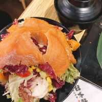 This is the second time to eat Japanese food. Because too deeply hanging stone grilled Gillette frosted beef tenderloin ordered the dinner set meal series. In addition to the Gillette Frosted Beef Tenderloin. It’s also served with Japanese rice. and can choose between spring eggs/sugar-filled eggs. Served with salad/miso soup & cold drink Satisfying visual enjoyment. The set comes with candied egg, the egg yolk is melty and sweet. Rice is added to the rice, so a bite of white rice is delicious: The only thing is that the bean curd soup tasted too bland :( Thick Japanese rice wrapped in crispy fried soft shell crab It was topped with mayonnaise and avocado, which was satisfying The last couple of pieces will be a little mushy. Next to also there is ginger to relieve thirst This time I tried to order salad🥗 Smoked salmon quinoa salad The ingredients are fresh, there are three big pieces of smoked salmon. The salty and smoky flavor goes well with salad vegetables There will also be corn kernels, salad lettuce, rocket and other common salad dishes The front things are greasy, you can eat this salad clear can help digestion Worth a listen, the restaurant environment is very comfortable. The decor is full of Japanese style, and the spacing is good #foodie #Hong Kong Good Places