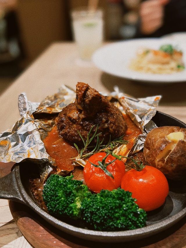 Celebrating 20 months together with my boyfriend👫❤️ Want to eat better💖 Seeing many people recommending this Japanese food house in Wanchai, I tried it😋 The restaurant environment is quite comfortable ❤️ large sense of space, will not sit very crowded. There are also many spacious booths ~ perfect for chatting with friends, couples dates☺️ I appreciate his service😳 As soon as we sat down, the clerk greeted us, introduced the menu to us, attitude was very polite ~ also very diligent to add water 👍 can be said to be caring ♥️ 🔸Signature Japanese Black Wagyu Burger Steak $189 Super looking forward to his signature Wagyu burger steak ♥️ The shopkeeper mentioned that it is made by hand, and is 100% made with Japanese black hair wagyu beef, the chef will carefully select the parts of the wagyu beef 🥰 Served on an iron plate, you can keep the heat, there are 4 sauces to choose from, we chose the signature fragrant wagyu stew sauce, feels quite match with wagyu. The meat is full of juice, the beef flavor is rich 🐮 The texture is good, soft enough, with the baked potatoes and vegetables next to it, rich and not too greasy 😋 🔸Japanese Black Wagyu Thick Cut Beef Steak $429 Highly recommended! ! This one is already drooling when I read the menu 😝💦 Five percent cooked is just right 🥩 extremely extremely thick, pink color, bite into the mouth meat is very soft, very juicy, has a melting feeling in the mouth 🤩 In fact, it is already very tasty, if you want to be more delicious can order a little rock salt / wasabi / homemade sauce / yellow mustard, seasoning after the taste is more sublimated 😇 🔸White Sauce Pasta with Pan-fried Hokkaido Scallops $189 Surprise 💗 Very creamy enough, its white sauce with black truffle sauce, the whole pasta emits black truffle fragrance 🥰 There are 3 strips in total, large and fresh ❤️ Bite refreshing and bouncy very good 😆 🍮Matcha Italian Cream $59 Finally, I must order a dessert to be complete😆 I am a matcha lover🍵 When I saw the words matcha, I couldn't help but try it🤣 The ice cream is soft and smooth 😍 The matcha flavor is rich 💚 With red beans and not too sweet cream, the whole thing goes well 😚👍 🍹Peach Mango Juice $49 🍹 Lime Soda $49 Peach mango juice is sweet and sweet, and the mango flavor is rich 🥭 Lime soda is more refreshing, great for relieving thirst 😝 The whole dining experience is very good 💕 The food is of high quality and the service is hotel standard😆 I highly recommend coming here to celebrate birthdays and anniversaries ~ I believe it can be quite unforgettable 🥰 📍 Grill Tajimaya Shop 2A-1, 2/F, Sun Hung Kai Centre, 30 Harbor Road, Wan Chai #hkfoodie #hkfoodblogger #foodpics #foodstagram #hkrestuarant #hkeats #foodshare #foodlover #yummy #wagyu #japanesewagyu #steak #hamburgsteak #wanchaifood #matcha #pasta