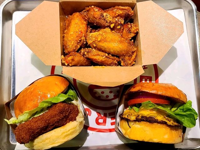The restaurant is near Wan Chai's bar street, only about one street away from the subway station, which is quite convenient. The food in the restaurant is all made to order, and the food is all hot and spicy~ Garlic chicken wings ~ Very garlic flavor, the bottom of the paper box is filled with Thai chili sauce, the chicken wings taste sour and sweet with a little spicy; the chicken wings are tender and plump, very delicious~ Cheese beef burger ~ In addition to the hot fillings inside, the bread is also hot and spicy, the beef flavor is very strong, and the fat is fragrant ~ Fish fillet burger ~ The fish fillet is bigger than the bread, about 1 inch thick. The fish fillet remains tender and moist after frying. Onions, tomatoes, lettuce and pickles are added as side dishes, giving it a rich taste ~ Address-Burger Joys (Grand Hyatt) Shop E, G/F, Grand Hyatt Residences, 42-50 Lockhart Road, Wan Chai Specialty - Hamburgers Price per person: $100 Rating - 🌟🌟🌟🌟🌟
