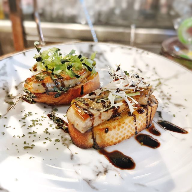 This bar and restaurant near Prince Edward MTR Station is very characteristic. In addition to a large screen you can watch football with friends, the food is mainly Spanish cuisine🤩 There are more than 90 drinks to choose from. 🥪 Pan-fried French Foie Gras Toast ($48/piece) Spanish food can't be without tapas🤩 Both Tapas will be hung on a metal rack after serving, the whole thing immediately grand! 🤣 After the goose liver is fragrantly fried, the outer layer is charred, the inside retains the smooth texture of the goose liver, sprinkled with black vinegar the whole feeling is very fresh and appetizing 😍 with crispy toast, so that the whole dish taste more rich and rich ~ 🦀Black Caviar Crabmeat Toast ($28/piece) The tender crab meat is topped with savory black caviar, presenting a richly layered mouthfeel; The toast is toasted crispy and blends with the freshness of the crab meat. It's worth a try😋 🦐Spanish Seafood Fried Rice ($188) The paella on an iron pan is hot, full of Spanish flavor, and the ingredients are not stingy: shrimp, mussels, squid, spicy sausage, very rich😍 The fried rice is not too wet or dry, the texture is just right, adding onions, garlic and other condiments make the fried rice more layered, and the unique aroma of saffron, adding a lot of color to the whole dish 👍🏻 🐖Plate Grilled Spanish Black Pork ($248) Pan-grilled Spanish Black Pork uses quality black pork. After being grilled, the meat is tender and juicy, with a fragrant aroma😍 Every bite can feel the deliciousness of black pork, and the thickness is just right, not tough at all😋 Side dishes include mashed potatoes, grilled eggplant and jade melon to balance the greasiness of the meat 🍸荔枝莫吉托($108) Mint Leaves, Lime Juice, Syrup, Rum, Soda Water, Lychi Sitting at the bar table, you can watch the bartender mixing drinks😍 I didn't expect the classic mojito to be presented with great sincerity, with a semi-circle of ice cubes on the surface to hold litchis, very creative 👍🏻 The fresh and sweet taste of litchi combined with the fresh Mojito makes the overall taste refreshing, and the addition of litchi adds a unique flavor to this cocktail🥰 Summary: Chat and watch football with Spanish tapas, great 😋 🍽Channel 3 Tapas Bar & Restaurant 📍G/F, 228 Tong Chai Street, Prince Edward @channel3hk #fon太子 #fon西班牙 #太子 #太子美食 #西班牙菜 #princeedward #princeedwardfood #spainish #spainishfood #channel3 #tapas #mojito #paella #foodieornot #foodie #hkfood #hkfoodie #foodiehk #foodiehkig #hkfoodblogger #foodporn #foodiegram #food #yummy #nomnomnom