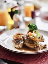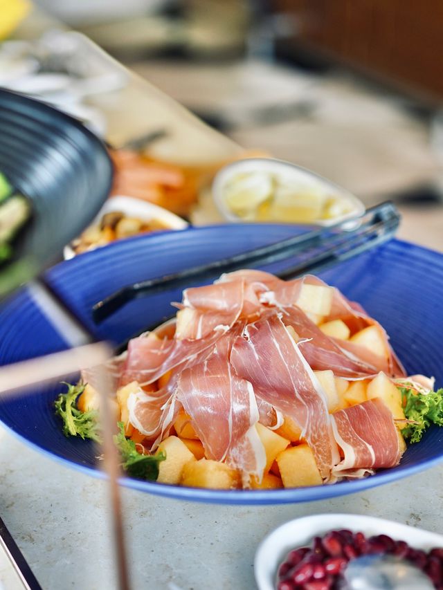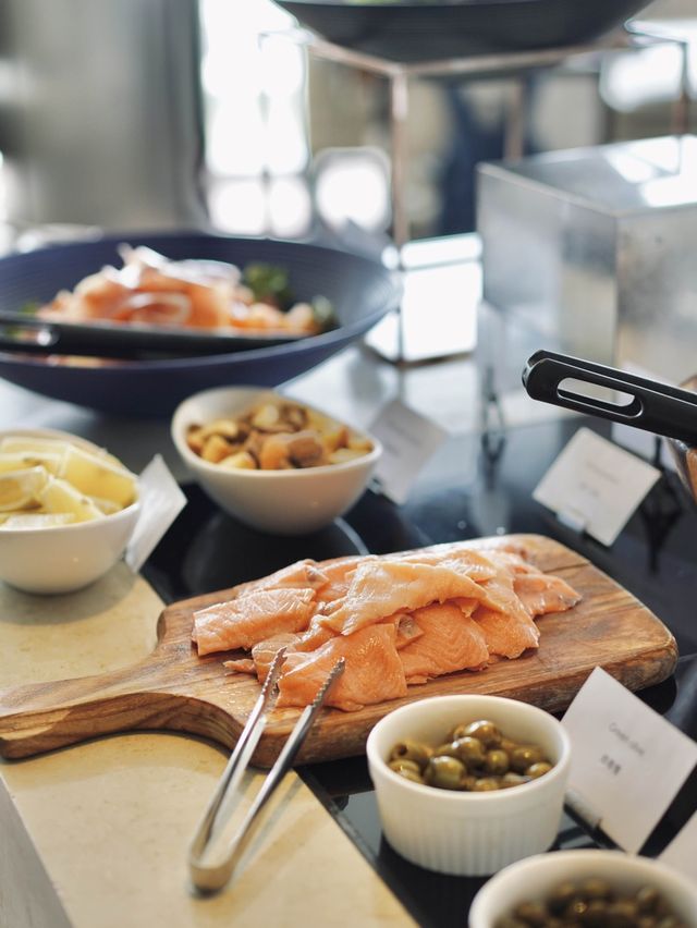 Starry Sky is located at Crowne Plaza Kowloon East Located at high altitude with outdoor seating Enjoy the sea view of Tseung Kwan O Comfortable environment~ Enjoy a semi-buffet lunch at the restaurant The salad bar has more than 10 exquisite salad styles Salad, ham, smoked salmon, Thai salad, buffalo tomato cheese, etc. Choose one main dish, high quality Although there are only a few desserts But you can try each one. The price is amazing, only 200-300 yuan per person Perfect for a relaxing lunch on holidays~ Semi Lunch Buffet . Self-service salad bar . Dessert buffet . Soup of the day Choose your own main dish . Cream stewed chicken fillet penne, fried spinach . Roasted peach stuffed pork fillet, cranberry sauce . A glass of sparkling wine . Freshly ground coffee or tea #Hotel buffet