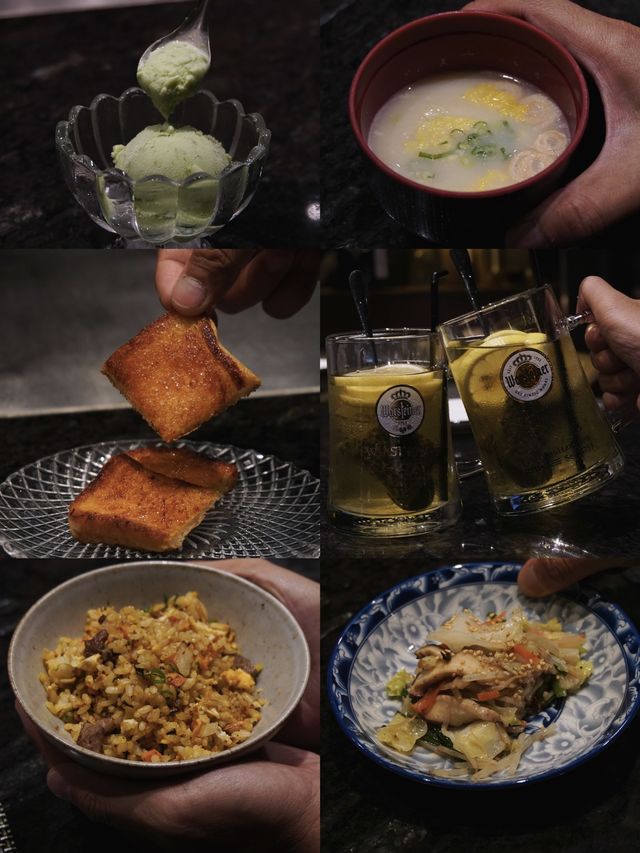Finally, happy Friday 🥹🥂 Introducing this newly opened Teppanyaki restaurant in Copper ~ Ben Ming, now dinner they offer "Ben" and "Ming" 2 sets, the price is $ 588 / $ 788 respectively I try the entry-level version of "Ben" first ~ Ben - $588/pax Appetizer: Sauce-cooked snails/vegetable salad The meat of the snail head is crispy, refreshing and appetizing. It's great with salad~ 📍Sashimi with spinach cream sauce The sashimi is big and plump, pan-fried to the outside and tender on the inside. The spinach cream sauce is richer again 📍Tiger shrimp with vanilla butter and shrimp head paste The tiger prawns are thick and bouncy, pan-fried in vanilla butter and drizzled with rich shrimp head paste 📍Squid with carrot fish soup cream sauce The fish skin is fried until the pieces stand, which is super crispy. The fish meat remains tender and juicy, and the cream sauce of carrot fish soup is more fresh and sweet 📍American Angus Beef Thin Grilled The chef cuts the beef into thin slices, rolls it with spring onion, onion and fried garlic slices, and fry it until it is five percent cooked and melts in your mouth. You can choose to season with rock salt, Japanese sour sauce or mustard. 📍Black pork ginger roll The black pork is sautéed in ginger juice and onions, then wrapped in spring roll skin and pan-fried until golden brown. There is the aroma of pork and the spiciness of ginger when you bite into it. 📍American SRF Extreme Black Wagyu Beef This is the most premium beef in the package and comes from the Snake River Farms ranch in the United States. The meat is tender and juicy with evenly distributed oil. The master cuts the beef into small pieces and fry them until they are cooked through, retaining the best taste. It tastes oily and full of meat flavour, which makes people have endless aftertaste. 📍Wagyu fried rice The Wagyu fried rice has minced Wagyu meat, carrot cubes, egg and spring onion 📍Fish soup Made with fish bones, mushrooms and baby cabbage are added, the soup is very clear and sweet 📍Fried wild vegetables is kale, assorted mushrooms and sprouts 📍Dessert/Drink Desserts include butter toast and pistachio ice cream. I look forward to this snack every time - the master fry the bread until caramel color, crispy on the outside and soft on the inside, so healing! Served with pistachio ice cream is great / finally there is lemon tea, when you come to scare, because it is really super large cup ~ ~ #Dakou in Causeway Bay #Causeway BayFood #PhotoRestaurants #PhotoInFood #CausewayBayTeppanyaki #CausewayBayNewRestaurant #topcitybiteshk#hkfoodie#hongkongfood#hongkonger#hkrestaurant#hkfood#hkig#like4like#followme#photooftheday#foodoftheday#ufoodphoto