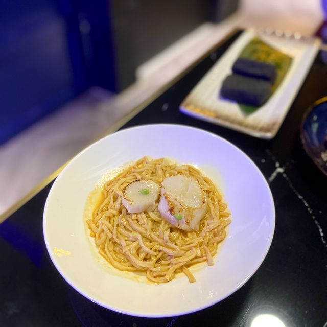 Zi Zui Hin (Mong Kok) 📍 4/F, Yue Fa Plaza, 560 Nathan Road, Mong Kok Located on the 4th floor of Yu Fat Plaza in Yau Ma Tei, "Purple Zui Hin" recently opened 🎉, it is a Chinese and Western restaurant🍴 The restaurant's unique decoration design shows thoughtfulness, as soon as you step in, you are attracted by the bar "Violet Bar" full of wine bottles 🍾 😍 There are also many stylish neon light photo spots ❤️. Cutlery and table are made of blue and black Noble blue with champagne gold as a complement, showing luxury, large red velvet chairs 💺 comfortable to sit 😌 The overall color is bold, more card seats, convenient friends gathering private space. The restaurant plays foreign language pop songs, which are not too loud to prevent chatting with friends. It feels casual. Looking at the menu, Zi Zui Hin focuses on new-style Chinese cuisine, concocting traditional Chinese cuisine with innovative and sophisticated cooking methods. Starters: Black Brick Tofu (HKD 98): Stylish black appearance, seemingly simple but very clever technique, black mainly grinds sesame to smooth, fried crispy outside and soft inside not to mention, crispy pulp thin and with pepper and salt flavor The tofu is very tender and smooth. Chan Pi Ghost Horse Sweet and Sour Pork (HKD 108): A large piece of homemade air-dried pineapple 🍍 paired with semi-fat and lean crispy pork, crispy outside and soft inside, chewy meat, sweet and sour sauce aroma, using Chan Pi as a decoration, and can have a relieving effect. Clear stewed crab powder lion head (HKD 128) with chicken soup a bowl: low heat slow stew, emphasis on fire throat, simple ingredients but can eat the freshness of meatballs and cabbage, a thread of crab powder, golden soup clear taste pure, rich but not greasy, soft taste, super rice, with chicken soup is not oily, soup is clear but rich, very warm after drinking. Green Crispy Fried Rice (HKD 88): The rice has distinct grains and is evenly stained with chlorophyll. The cabbage grains are light and sweet, the crispy rice is charred, and the egg whites and spring onions are garnished. It tastes "soo-so" and hot enough. Lobster Soup Scallops Sugar Heart Noodles (HKD 78): Scallops are slightly fried and tender, the noodles are fed with fresh lobster, add the right amount of black truffle, very prominent, the soup is thick state, do the effect of hanging juice, each bite of lobster 🦞 flavor sent into the import. summary: The decor is unique and the Chinese cuisine is exquisite Comfortable dining environment and reasonable price #Yau Ma Tei #Yu Fat Plaza #Zi Zui Hin #Exquisite Chinese Cuisine #Luxury #Black Brick Tofu #Green Crispy Fried Rice #Lobster Soup Sugar Heart Scallops Noodles #Stewed Lion Head #Chan Pi Ghost Horse Sweet and Sour Pork #foodie #Local Tour