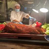 Macau buffet many choices, this time finally my turn to come to the buffet mountain, 6 o'clock on time, the door has been a long queue waiting to sit, entered to sit down before ordering ready-to-eat seafood, lobster and Crab 2 choices, cheese baked lobster & broth baked lobster, shelter from the wind Pond fried crab & ginger and onion fried crab! Then go around the venue to see what to eat first, super variety, super much food, if not taking pictures, I do not know if I have eaten so many delicacies, if not 3 My stomach can't eat the food from the buffet mountain. The lobster has been Encore countless times... There is a specialty dish tour every night at 6:30, 7:00 and 7:30, with staff pushing roast suckling pig and big lobster going around the venue for a week to cook fresh big lobster congee and garlic steamed bacon! You can really eat from 6 to 10... #Macaufood #buffet