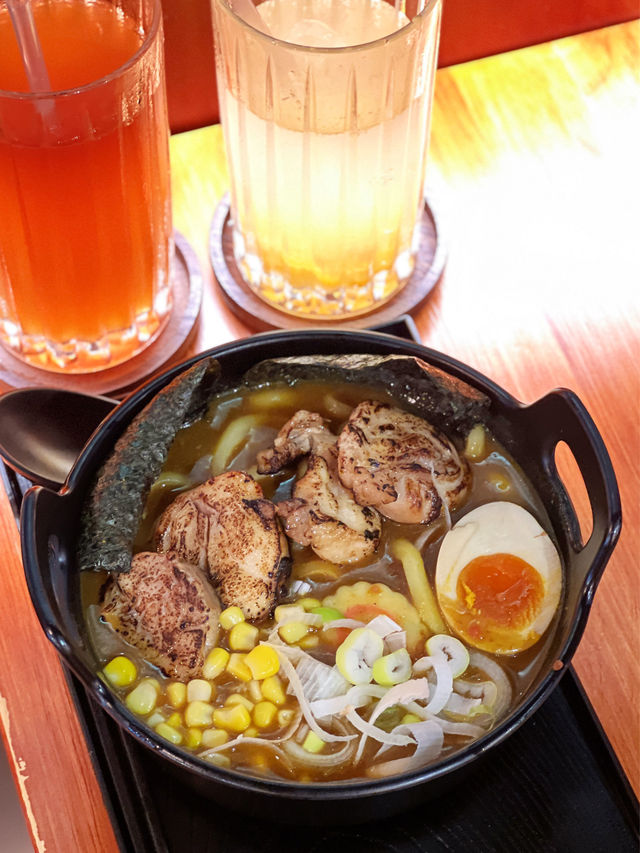 This Japanese restaurant is located in Mong Kok, close to Kwong Wah Hospital at Yau Ma Tei Station. It specializes in a wide range of authentic Japanese cuisine, with giant Japanese baked cakes and Okonomiyaki being its signature dishes. . The interior of the store is dominated by simple wood, and the decoration is full of the style of a Japanese restaurant, suitable for dates or large gatherings. . 🔸Hida Wagyu Hamburger Steak Udon in Tomato Soup - $108 The extra-large wagyu burger is of moderate thickness, fried to a slightly crispy texture, with a strong meaty flavor and extremely rich gravy; the homemade fresh tomato soup is extremely thick, sour and sweet with particles of fresh tomato meat, and the udon soup is chewy and bouncy; and there are also half-cooked soft-boiled eggs, womam rolls, sweet chestnut grains and seaweed as toppings, which is very rich. . 🔸Seared and slow cooked chicken, barbecued pork, curry soup, udon noodles - $78 The four pieces of barbecued chicken are crispy on the outside and tender on the inside. They are slow-cooked to retain the maximum amount of gravy and are not dry at all. The homemade curry soup is also thick, with the sweet Japanese curry aroma, and also has rich ingredients. . 🔸Scallop Okonomiyaki - $98 Covered with seaweed powder, mayonnaise and sauce, and topped with a large amount of bonito flakes, it is very tempting; the Okonomiyaki is crispy on the outside and tender on the inside, with soft flour, crispy shredded cabbage inside, and snow-white scallops that are smooth and chewy. . 🔸Honey grapefruit soda +$19 The sweet and sour grapefruit has a sweet honey flavor and the refreshing carbonated bubbles. . 🔸Grapefruit Oolong Tea +$19 Refreshing oolong tea with rich and sweet grapefruit aroma. ----------------------------- Kaede Address: Shop 32B-D, G/F, Yan On Building, 1 Kwong Wah Street, Mong Kok #hkfoodie #hkfood #hkrestaurant #hkfoodblogger #hkdaily #foodrecommendation #hongkongfood #hkgoodplaces