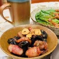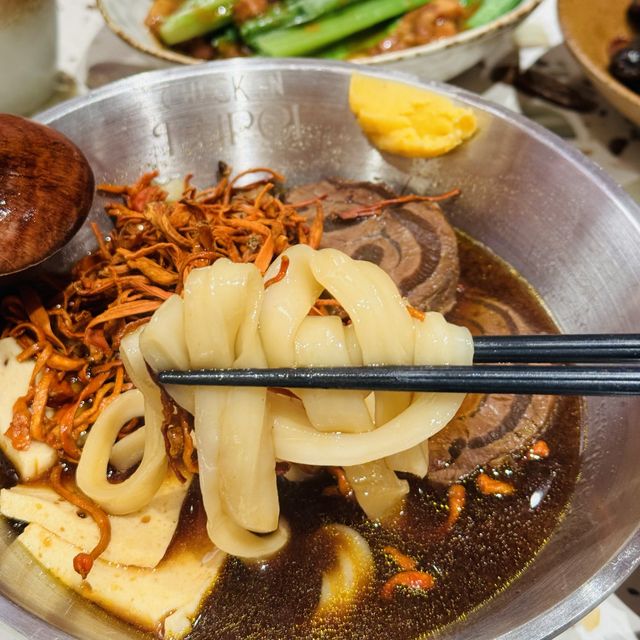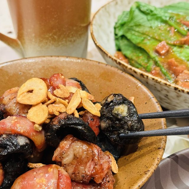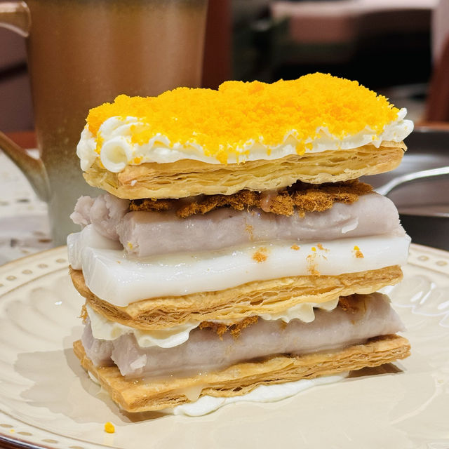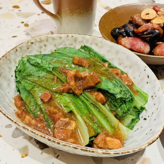 Friends who love Taiwanese cuisine must know the new Taiwanese restaurant "Taipei Inn Check In Taipei", flavor and taste is completely authentic Taiwanese taste, today came to Causeway Bay World Trade Plaza branch, this shop with Taiwanese railway and indigenous elements as the theme, creating a retro and full of mountain and forest atmosphere dining environment, providing authentic Taiwanese flavor series ▪️Garlic Tricolor Taiwanese Sausage $68 My favorite Taiwanese sausage is crispy and tough, with a slightly sweet taste. This time I can eat three different flavors at once, including ink, black pepper, and original flavor. They are as delicious as they are, plus garlic slices 🥬▪️ Stewed pork with Taiwanese A dish $88 A dish is Hong Kong's oil wheat dish, fresh, green and refreshing, served with Taiwanese stewed pork, refreshing and tasty 🐮▪️ Signature Beef Noodles with Butter (Handmade Knife Noodles) $108 The ingredients are full, first drink a sip of beef bone soup, sweet and with a little medicinal fragrance, knife noodles are smoky and bouncy, beef stew is seasoned, soft taste, with fried insect fungus flowers and fish fillets, taste authentic and a little fusion, plus selected local 60-year-old "Siu Kee Fat Beef" provided beef fat into "bow fat oil" 🍚▪️ Signature Stuffed Pork Rice $68 The stewed pork selected pork loin with skin fine hand-cut, eat very tasty, after the baptism of stew, is the traditional taste, fragrant hand-cut stew is definitely the white rice killer, plus half a boiled stewed egg, big mouthful to eat, quickly eaten up Incidentally, this place uses Tai Teng No. 9 rice, which has a unique fragrant Q taste, which is really delicious 🍯▪️Taro Mud 3Q Napoleon $108 Must-try dessert recommendation, selling excellently layer by layer clearly see all the ingredients, buttery fragrant oil crispy Napoleon on top, soft fragrant taro flavored taro puree, minced meat, cream, smoked marshmallow, top layer and sprinkled with egg yolk, the whole dessert is crispy and soft and smoky, and not too sweet, very tasty 🧋▪️Bubble milk tea $45 The milk tea tastes refreshing and not too sweet. The pearls are smoky and glutinous, which is quite good 🏚️ CHECK IN TAIPEI (世贸中心) 📍Shop 7, 4/F, World Trade Centre, 280 Gloucester Road, Causeway Bay #checkintaipei #Taipei Inn #Taiwan Food #Taiwanese Cuisine #Steamed Pork Rice #Taiwanese Beef Noodles #Taiwanese Sausage #Bubble Milk Tea #kol #foodkol #foodlovers #blogger #foodblogger #foodkol #food #foodie #foodlover #foodforfoodies #hkfood #hkfoodie #hkfoodblog #hkfoodblogger #hkfoodstagram #hkfoodpic #hkfoodporn #hongkongfood #cameraeatfirst #eatgoodeveryday series #lonely foodie