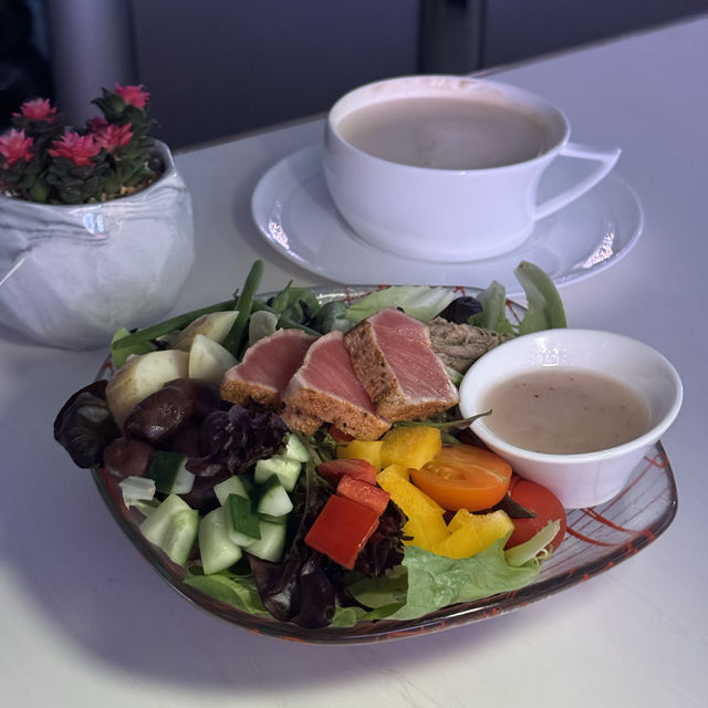 Anniversary's big day💖 spent an unforgettable evening with my partner @sky100hk🥰 Located on the 100th floor, Sky100 offers a 360-degree bird's-eye view of Hong Kong's Victoria Harbor at night, as well as a laser display at 8pm every night, and fireworks during festivals🎆 After enjoying the beautiful view, you can go to Café 100 on the same floor for sunset dinner. The coffee shop is run by the 5-star hotel The Ritz-Carlton, Hong Kong ❣️Café 100 Sunset Dinner ($508/pp) 🔸 Starter ▫️ Selected soup/Negos salad of the day ~ The soup is creamy, the salad is rich and fresh🤤 🔸Main course ▫️ Braised beef cheek with stewed chickpeas and Spanish sausage, vegetable sprouts, herb sauce ~ The beef cheek meat is stewed to be very tender and seasoned, the beef flavor is rich, the taste is refreshing and full of bone marrow. The side dishes are rich in chickpeas, Spanish sausage and vegetable sprouts, really worth a try😎 ▫️ Pan-fried halibut with truffle mashed potatoes, seasonal vegetables and grapefruit cream sauce ~ It looks beautiful! The crust of halibut is crispy, the meat is very tender. The truffle mashed potatoes are creamy in the mouth, the truffle flavor is rich, with grapefruit cream sauce, full of flavor😋 🔸Dessert ▫️ Blueberry Cheesecake ~ Rich Cream Cheese with sweet blueberries, blueberries sweet and sour taste makes people eat a full sense of happiness💞 ▫️ Waffles with Hokkaido milk ice cream ~ Crispy toasted waffles, served with soft Hokkaido milk ice cream, are the perfect ending to this meal💞 🔸Bubble coffee Great for taking pictures📸 Finally, two cups of bubble coffee with "Café 100" written on it, rich and fragrant! 📍Café 100 by The Ritz-Carlton @sky100hk @ritzcarltonhongkong Skyline 100 Hong Kong Observation Deck, 100/F, Universal Trade Plaza (ICC), 1 Constantine Road West, Tsim Sha Tsui