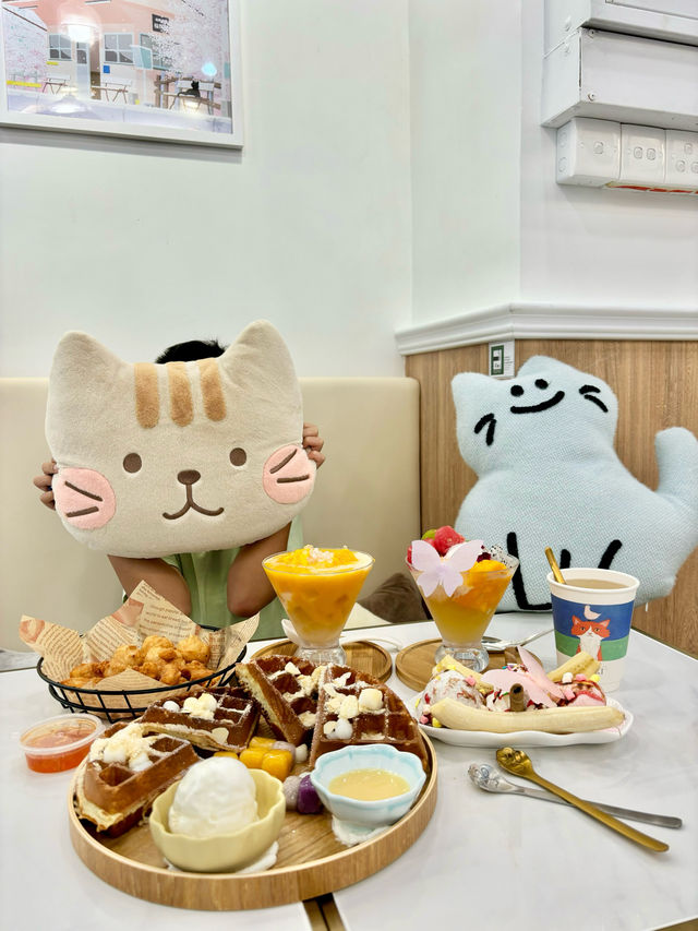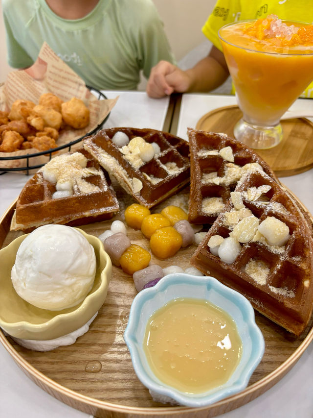 [Enjoy Dessert] I'm so happy! Another delicious dessert shop 🥹😍 in Union Market, with Western desserts, Chinese desserts, and snacks, afternoon tea & supper have a good choice! Must order waffles 🧇 & heart 🖤! 🤎 Sugar-Free Ball Waffle: The waffle is crispy on the outside and fluffy on the inside, and is delicious with condensed milk or semi-melted vanilla ice cream⚪. Taro balls & balls are both smooth and chewy. There are also many kinds of waffles, next time I want to try Oreo & Baileys😋 🖤 ​​Heart soft: The presentation is beautiful and exquisite, cut open to melt burst, with Belgian chocolate 🍫, very rich, with ice cream to eat together, hot and cold, double enjoyment! 🧡 Mango Honey Crystal: Homemade crystal, light honey sweet 🍯, Q bouncy good bite, also coconut & sweet mango flesh 🥭, mango juice base, usually like to eat mango dessert must try this! 💛 Banana boat: double ball ice cream + a large sweet banana 🍌, plus rainbow crumbs, children's favorite 🩷 Heart blossoms: Colorful fresh fruit pieces, dragon fruit, mango, watermelon, etc., below is honey crystal, on top and ice cream balls 🍨 & seaweed beads, great for summer heat ~ 🧡 Flower ball salt and pepper chicken platter: fried very crispy, and not oily, with Thai hot and sour sauce, crispy and delicious ~ 💛 Apple Grapefruit Honey: Sour and sweet, but most especially the cat beautiful paper cup! The shop decorations are all cat meows🐾, so cute~~ 🐱▫️🐱▫️🐱▫️🐱▫️ to enjoy dessert (Fanling branch) @tandessert 📍Shop B, G/F, Fu Ho Court, 1-7 Lien On Street, Lien Wo Huk, Fanling #What to eat #August Good Places 2024 #foodphotography #EnjoyDessert #Dessert #foodie #highquality #Fanling #FanlingFood #HongKongFood #HongKongDessertShop #HongKongDessert #Marshmallow #MarshmallowLover
