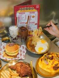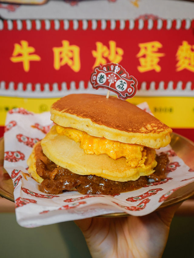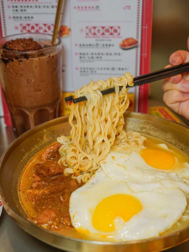 Ice cream parlors and cha chaan teng basically eat several times a week, recently visited "Old Lai Ice Cream Parlour" in Lai Chi Kok, the ice cream parlor uses many nostalgic Hong Kong-style theater elements, such as the use of red and yellow colors and dragon and phoenix walls, forming a strong visual contrast. Satay beef noodles Basically every time I go to the ice cream parlor must order satay beef noodles. You can see that the portion of satay beef is quite large, the meat is soft and sweet, and has a little spiciness. Satay Beef Scrambled Egg Hot Pancake Burger Recently, the hot biscuit burger has become popular among Hong Kongers. It turns out that it is very special to pair it with satay beef. Because the hot biscuits are sweet, they will be more prominent when paired with sweet medium and spicy beef. Scrambled egg and char siu rice Smooth scrambled eggs are the best combination with char siu. Golden sand chocolate melted western toast Traditional western toast is eaten a lot, paired with Jinsha chocolate for the first time. It's still creamy when you cut it. For drinks, I tried the Avacado Crispy Volcano, which felt quite rich in layers. Laoli Ice Room 📍Shop 1, G/F, Integrity Centre, 495 Tsing Shan Road, Lai Chi Kok
