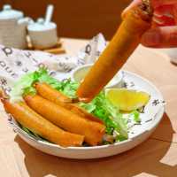 Que now has more branches in Hong Kong, and I noticed they are currently holding a summer fruit festival, which is very appetizing and refreshing. Long-legged crab stick avocado crab roe sushi tower Signature sushi tower, wrapped in lightly fried seaweed with fillings, full of character. Fried shiso capelin roll with Japanese mayonnaise Capelin wrapped in spring roll, very creative. Adding shiso not only enhances the flavor but also removes the fishy smell. Pan-seared pineapple duck breast with passion fruit banana sauce and mustard mashed potatoes A very high-quality main course with a fine dining feel. The duck breast pairs well with pineapple, mixed with fruit flavors, and you can taste the mustard, creating a layered flavor. Cinnamon butter baked apple with vanilla ice cream Another high-quality dish, a whole baked apple with sweet and sour sauce and cinnamon aroma, leaving a lasting impression. Red-fleshed dragon fruit peach grapefruit sparkling drink | Pineapple cucumber rosemary sparkling drink Don’t miss these two special drinks, both made with fresh fruit! 🛎️Must-try rating: 8/10🔆 📍Shop B111-112, B1 Floor, URBANHOOD, Hysan Place, 500 Hennessy Road, Causeway Bay, Hong Kong 🅆🄸🄽🄶 🅆🄸🄽🄶 🄿🄸🄶 🄻🄸🄵🄴
