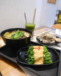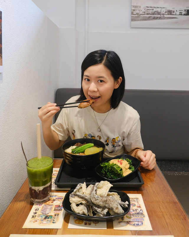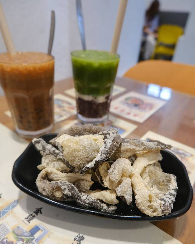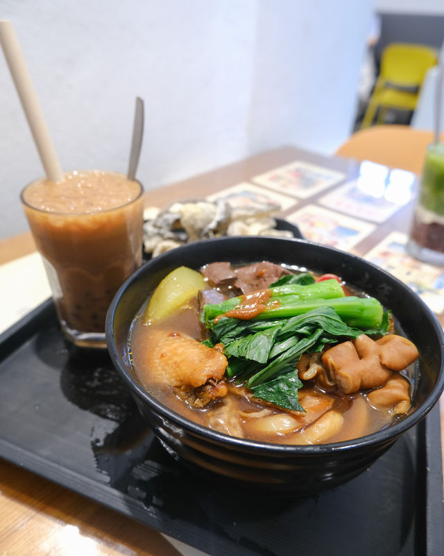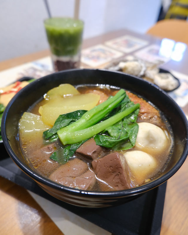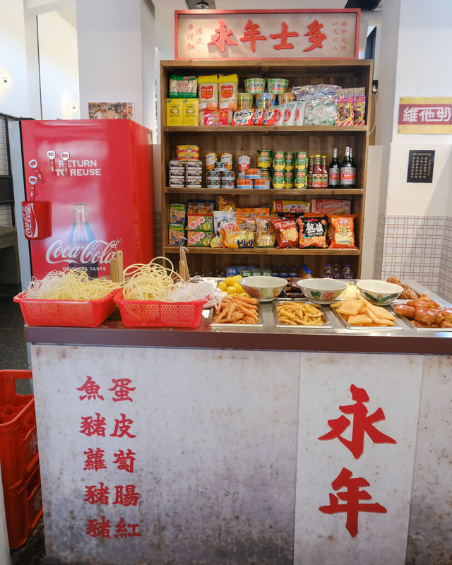 I've always loved eating at Wing Nin because their cart noodles have such rich flavors🍜~ Now there's a branch in the North District, located inside the revitalized heritage Luen Wo Hui Market🛒~ The design has a strong retro vibe, and there's even a cart noodle cart! After eating noodles, you can also visit and join activities📸~ When it comes to food, my mom usually just says yes to anything🤷♀️~ The best thing here is to order a large bowl of noodles for her, no need to think about anything💯~ It comes with all her favorite toppings~ For example, large intestines, pig's blood🐷, wing tips, etc., and you can choose between spicy mala or curry spicy flavor🌶~ I like to pick my own toppings because the portions are bigger when you choose yourself😋~ My favorites are pig's blood and radish🥕, I always order them~ This time I also added chicken wings and crab roe balls🍡, the bowl was full of toppings~ If you order other dishes with noodles, it’s a bit cheaper🥬~ But since they don’t have fermented bean curd water spinach, I ordered it separately👌~ The sauce is really generously applied, and if you’re worried about it being too salty, you can ask for less sauce~ Today I suddenly craved fried fish skin🐟, so I ordered a plate separately~ The portion was quite large😍, and it was super crispy~ It’s really great to dip it into the soup and eat it👍~ You can also order drinks at a discount with your meal. My favorite, matcha red bean ice, is just an extra $15🍵~ It’s a must-order every time, with a rich matcha base and big, powdery red beans🫘~ My mom prefers milk tea🫖~ The tea is very strong, with the slightly bitter taste typical of Hong Kong-style milk tea, but just as delicious as the matcha~ After a full meal, you can check out the exhibitions in the market (aka cool off with the air conditioning)~ Right now, there are many Lego exhibitions inside, including a big Rainbow Estate🏢, which is really beautiful and perfect for photos~ Kids who love Lego definitely have to check it out~ 📍Wing Nin Store Shop S17-S36, G/F, Luen Wo Market, 51 Luen Wo Road, Luen Wo Hui, Fanling, Hong Kong ie #Fanling #Wingnin Food Food Recommendations
