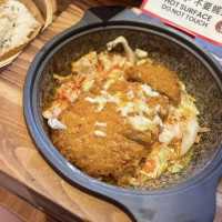 The popular Okinawa restaurant chain @antoshimohk has opened a branch in Tseung Kwan O🤩🤩 The restaurant focuses on Okinawa specialty cuisine, offering a variety of main dishes plus snacks, desserts and other combinations ~ The decoration of the shop is full of Japanese style 🇯🇵, perfect for taking pictures with friends! !                    —— 🥘Cheese Tomato Gillette Pork Chop Stone Pot + Hot Spring Egg Steamed Rice $72✨ The original pot is served hot ~ the pork chop is fried crispy on the outside and soft on the inside, served with string cheese and tomato sauce, rich in flavor! ! I also chose "steamed rice with hot spring egg🍚". The steamed rice is soft and fragrant, and the top layer is hot spring egg and rice 😋😋                    —— 🍝Carbonife Mint Udon $89✨ The udon is smooth and tender, and very juicy. After mixing the poached egg🥚, mint, and carbonara sauce, it tastes very creamy! Recommended 👍🏻👍🏻                    —— 🍗 Honey Mustard Chicken (with meal)✨ The fried chicken is crispy on the outside and tender and juicy on the inside! Served with honey mustard sauce, it's delicious🤤🤤                    —— 🥟 Osaka Grilled Sauce Chicken Dumplings (+$20)✨ The dumplings are pan-fried golden and crispy, topped with Osaka barbecue sauce, salad dressing and shredded wood fish. They are sweet and sour and very appetizing! !                    —— 🍩Okinawa Sea Salt Caramel Pudding Donut Ice Cream (+$29)✨ 🍩Okinawa Sea Salt Caramel Donut Ice Cream (+$20)✨ You must try their signature dessert when you come! ! The donuts are crispy on the outside and smooth on the inside, the pudding is smooth and smooth 🍮 ~ plus the sweet and salty sea salt ice cream and caramel sauce, the taste goes very well ❤️❤️                    —— For drinks, we chose iced black sugar lemon tea (+$6)🍹 and iced matcha milk (+$12)🍵~~ The lemon tea has a fresh base with a faint black sugar aroma! Matcha milk is smooth in the mouth, the matcha and milk flavors are very fragrant 🥰🥰                    —— 🏠 Okinawa 2nd Section Cuisine Address: G4, G/F, PopCorn 1, 9 Tong Hin Street, Tseung Kwan O #Okinawa2 Section Cuisine #Tseung Kwan O Food #foodie #foodiehk