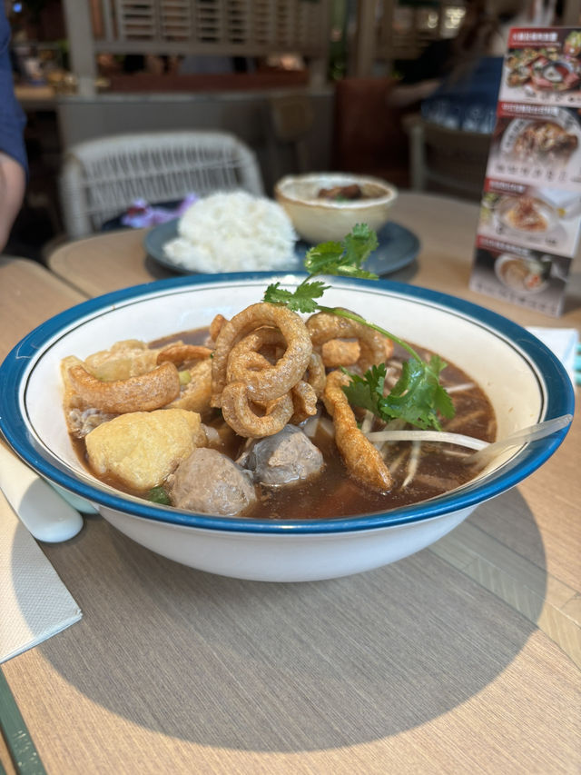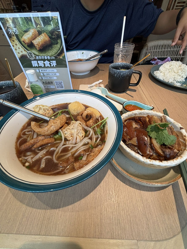 The restaurant I'm introducing today is "Mi Tai" in Tsuen Wan Plaza. It's been open for about three months, and every time I pass by, I always see a long line outside. This Saturday, I finally got the chance to try their dishes! 😊 The restaurant's decor is quite thoughtful, with a mix of warm browns and greenery creating a tropical atmosphere reminiscent of Southeast Asia. The moment you enter, you'll feel like you're in a Bangkok street restaurant. For the dishes, I ordered Mi Tai's premium boat noodles and braised pork trotter boat noodles. The noodle soup had a rich, rich broth with a unique layer of Thai spices. The deep-fried pork skin atop the noodles added a crispy texture, and the fresh cilantro added a fragrant aroma. The braised pork trotter was soft, flavorful, and full of gelatin. Every bite was truly satisfying. The rice was cooked perfectly, making it a perfect accompaniment to the other dishes. The dining environment was comfortable, the service was attentive, and the overall experience was excellent. If you love Thai cuisine and want to try it in a comfortable setting, Mi Tai is worth a try. Whether it's a light lunch or a full meal, it'll take your taste buds on a journey through the flavors of Thailand. You'll definitely want to visit again to discover more dishes. Address: Mi Tai (Tsuen Wan) Shops 350-352, 3/F, Tsuen Wan Plaza, 4-30 Tai Pa Street, Tsuen Wan