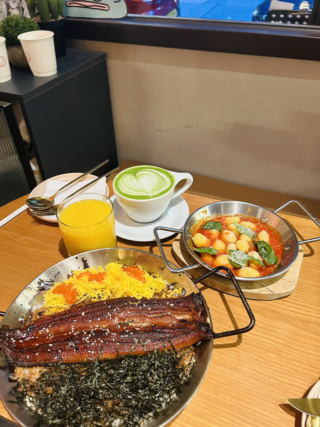There's a high-quality cafe in Prince Edward that you can't miss! They've just launched a new menu! Whole eel with kabayaki sauce on rice. Served piping hot, the whole eel is tender, juicy, and delicious. The rich kabayaki sauce complements the rice perfectly! Butter potato gnocchi with Spanish 🇪🇸 red pepper sauce. The butter potato gnocchi 🍡 are smoky and chewy, and the red pepper sauce makes them even more appetizing. The Basque cake 🍰 is a surprise! The pistachio flavor is unique, and I'm a pistachio fan! The lava caramel custard omelette is served on French toast with peach crumble and caramel biscuits. 2 Soon Cafe 📍Ground Floor, 324 Sai Yeung Choi Street North, Prince Edward #Prince EdwardFood #Prince EdwardCafe #Check-InCafe #HongKongFood