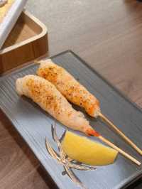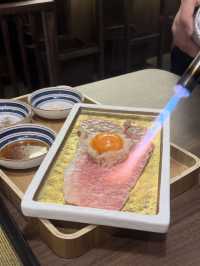 Visited a luxurious izakaya called "Kin Sakaya" 🏮 with my buddy Best. Tsukimi Grilled Miyazaki Wagyu Rice Ball 🍣: When served, the staff torches the tender, marbled Miyazaki Wagyu beef 🔥. The smooth Wagyu is paired with raw egg yolk 🍳, rice 🍚, three types of seasoning 🧂, and a rich meaty flavor 🤤. Absolutely delicious 👍🏻. Miyazaki Wagyu and Sea Urchin Sashimi (2 pieces) 🥩: The Miyazaki Wagyu has evenly distributed marbling ❄️. The tender beef complements the rich sea urchin 🐄💛, melting in your mouth 😋. Homemade Chicken Skin Shrimp Skewers (2 skewers) 🍤: Fresh shrimp wrapped in chicken skin 🐓, grilled to a golden brown ✨. The chicken skin is crispy and chewy 😆, while the shrimp is bouncy and sweet 🦐. Lightly seasoned with salt and lemon juice 🍋, it's a standout dish 💯. Angus Beef and Bonito Broth Inaniwa Udon 🍜: The aroma of Angus beef blends with the sweet bonito broth 🐮🐟, accompanied by fresh vegetables 🥬, soft-boiled egg 🥚, and fish cake 🍥. Kin Sakaya Address: 📍 G/F, 909 Cheung Sha Wan Road, Lai Chi Kok