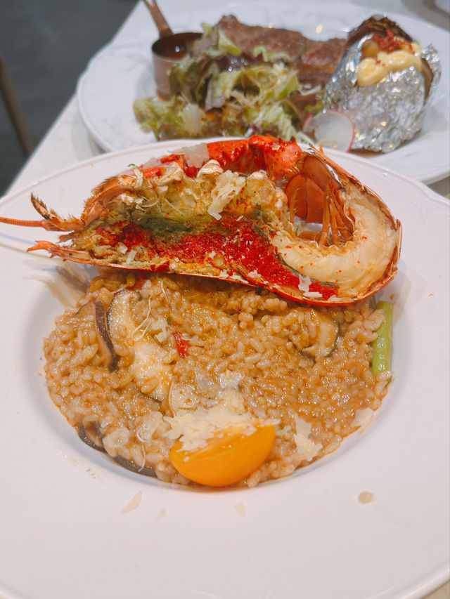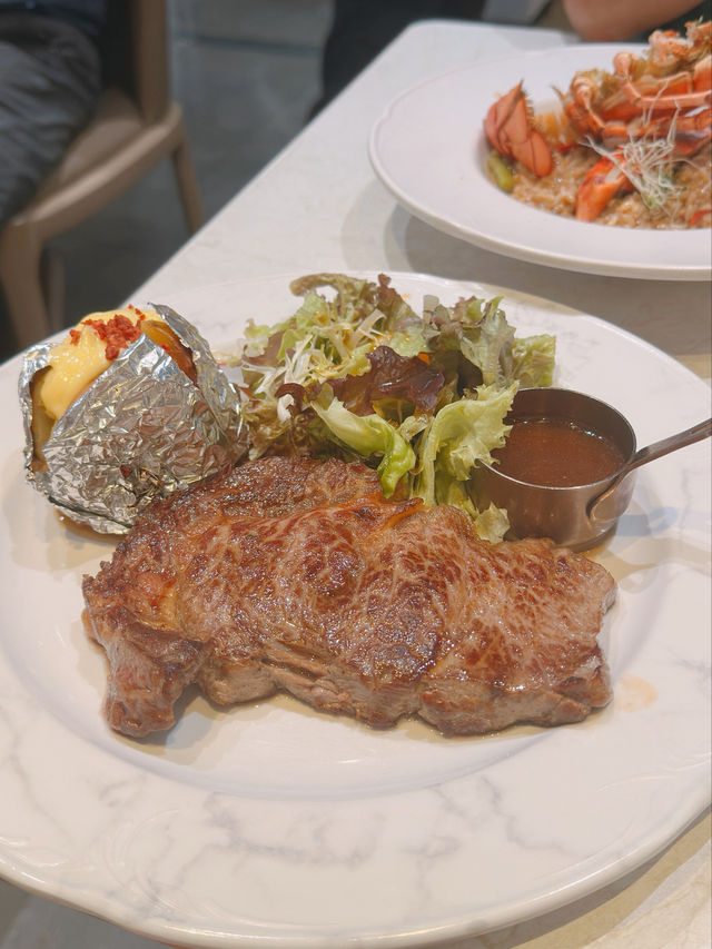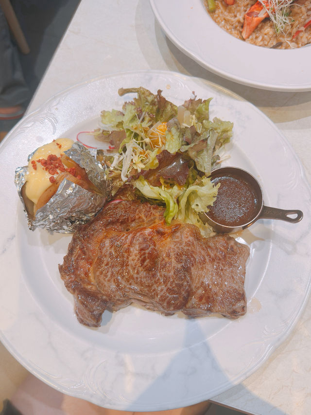 Jordan is packed with restaurants, making it hard to choose👉🏻👈🏻. This time, we visited "Plato Cafe & Bistro" for a small gathering with friends👭🏻. ⚠️ This restaurant charges a 10% service fee💰. Selected Two-Person Set Menu🍽️ Set Price: $498💰 Charcoal-Grilled Australian Ribeye Steak🥩 Included in the set💰: The ribeye is infused with a rich charcoal-grilled aroma🔥, very juicy😋, though slightly tough🥺. Adding sauce enhances the flavor👍🏻. Served with baked potato and salad🥔🥦. Boston Lobster Risotto with Lobster Sauce🍚 Included in the set💰: Comes with half a Boston lobster🦞, which is fresh, sweet, and bouncy🤤. The lobster sauce is the essence of the dish😉, mixed with mushrooms🍄, beans🫛, and cheese🫕. Smoked Salmon Caesar Salad🥗 Included in the set💰: Generous portion of smoked salmon🐟, paired with romaine lettuce🥬, cherry tomatoes, bacon bits🥓, croutons🍞, and grated cheese🧀. Refreshing and appetizing😛. Soup of the Day (2 servings)🥣 Included in the set💰: Mushroom soup🎃. Dessert of the Day (2 servings)🍮 Included in the set💰: Includes cheesecake and Dreyer’s chocolate ice cream🍰🍨. Iced Fruit Tea (2 cups)🍹 Included in the set💰. Plato Cafe & Bistro Address: 📍 G/F, 186-188 Woosung Street, Jordan