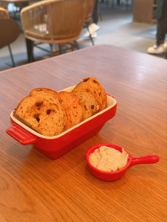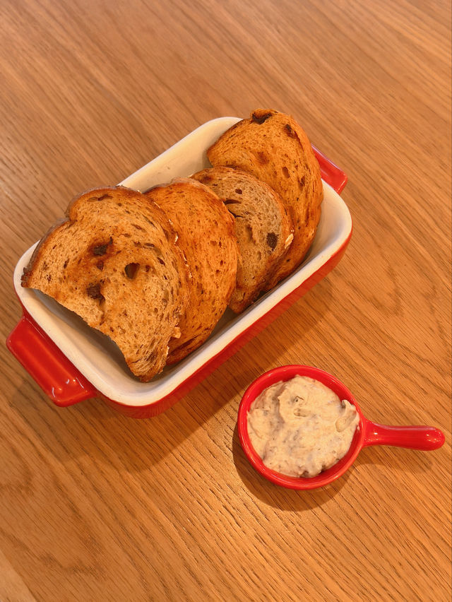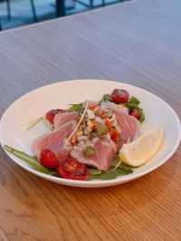 I arranged to have Italian food with my colleagues at "Ask for Alonzo" 🇮🇹. The restaurant offers a comfortable and stylish ambiance✨. Alonzo’s Set Dinner (for 2) 🍽️ Italian Porchetta 🐖: The Italian roasted pork belly is incredibly thick 😱, with a crispy skin 😆. However, the meat is slightly too salty and tough 🥺. It is served on a bed of mashed potatoes and black mushroom sauce 🥔🍄🟫. Crab Linguine 🍝: The crab meat linguine 🦀 is coated with extra virgin olive oil 🫒, along with chili 🌶️, cherry tomatoes, and basil leaves 🌿, offering a mildly spicy flavor 😋. Seared Tuna 🐟: The tuna is seared to medium-rare perfection 🔥, accompanied by onions 🧅, capers, bell peppers 🫑, cherry tomatoes, and arugula 🥬, with a drizzle of lemon juice 🍋 for a refreshing and appetizing taste 🤤. Roman Meatballs 🧆: The Roman meatballs are impressively large 😍, with a tender texture 😬, topped with Parmesan cheese 🧀. Pre-dinner bread 🥯: Includes sun-dried tomato bread and nut-raisin bread 🍅🍇, served with truffle Parmesan cheese dip 🖤. Alonzo’s Signature Tiramisu 🧁: Near the center where the ladyfingers are, you can taste the rich aroma of coffee liqueur 🍾. Cheesecake 🍰 Fresh Orange Juice 🍊 Cappuccino ☕️ Address of Ask for Alonzo: 📍 Shop 6, G/F, PCCW Tower, Taikoo Place, 979 King’s Road, Quarry Bay