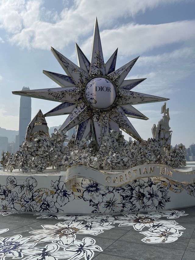 A 10-meter-tall Christmas star installation. Dior's 2023 Resort Collection, themed after the traditional Christmas decorations, showcases a unique Christmas spirit! Incorporating rose motifs, florals, and Seville knots, the star creates a unique artistic ambiance. We recommend visiting near sunset to experience both the daylight and the illuminated night view. 📍Harbour City, Tsim Sha Tsui, Ocean Terminal #ChristmasDestinations2022 #HongKongDestinations #FamilyDestinations