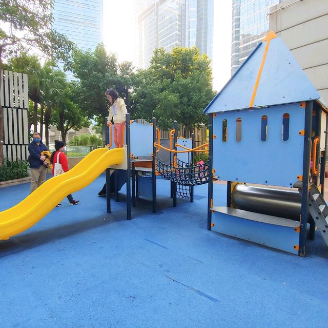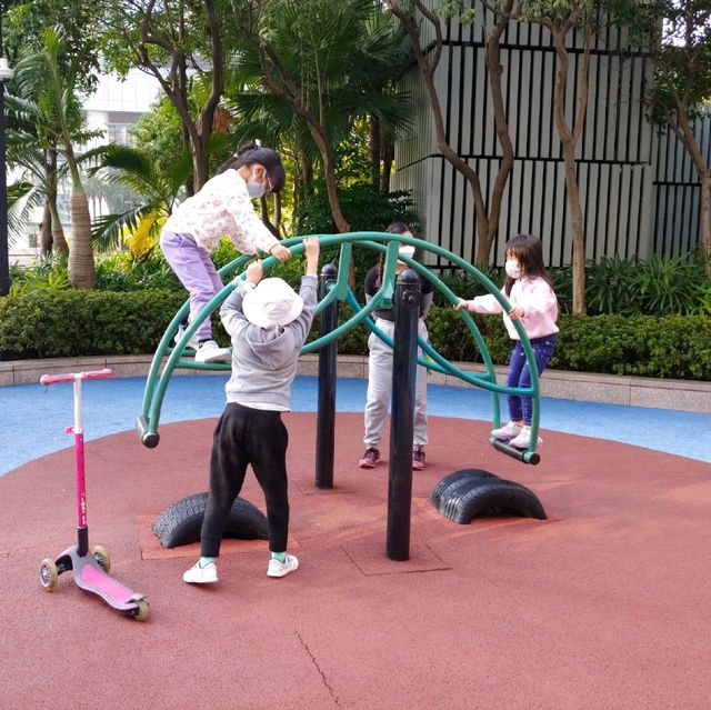 A children's park with a quiet environment atop Kowloon Station