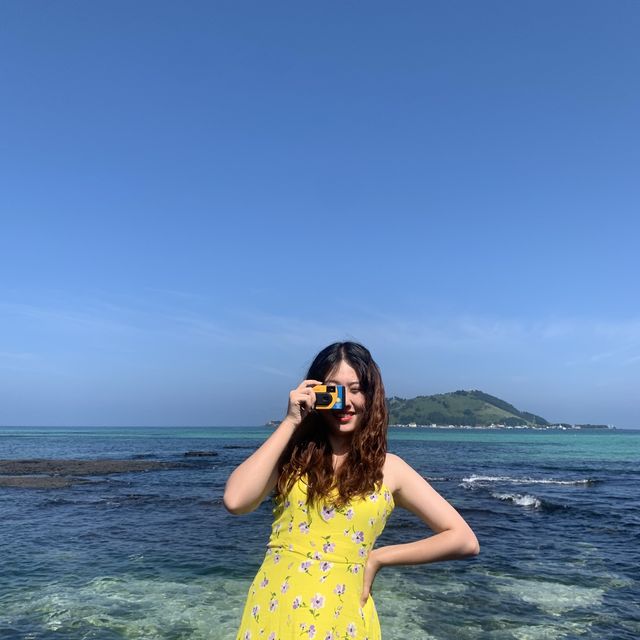 Jeju Hyeopjae Beach, where you can enjoy the clear emerald sea and sunset๐ŸŒŠ