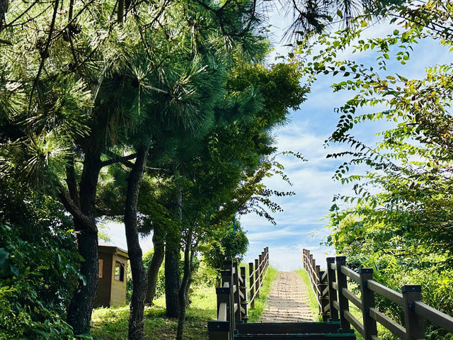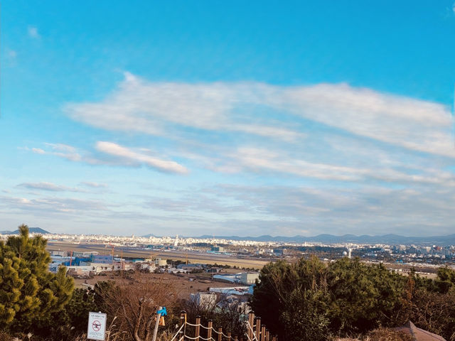 #summervacay Dodubong on Jeju Island is an absolute gem for anyone seeking a rewarding panoramic view without committing to a strenuous hike. This small but mighty oreum (volcanic cone) is incredibly accessible, located conveniently close to Jeju International Airport and the coastal road. The ascent is remarkably easy, typically taking only 10-20 minutes to reach the summit via well-maintained paths and wooden stairs. Once at the top, you're immediately greeted with breathtaking 360-degree vistas. From one side, you can see the bustling Jeju City skyline and the airport with planes taking off and landing, while the other offers expansive views of the sparkling ocean and Jeju's rugged coastline. It's the perfect spot for a quick escape, offering maximum scenic payoff for minimal effort. #beachlife #thingstodo
